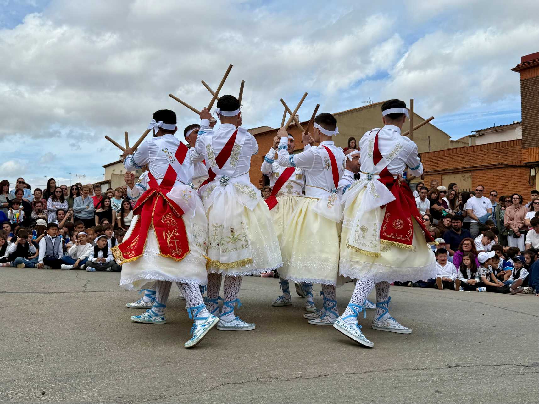 Desde allí, la comitiva y los Danzantes del Cristo de la Viga, ataviados con los trajes blancos de enaguas, han partido hacia la ermita de la Virgen, donde cientos de personas, incluidos niños y niñas, han recibido en el exterior de la ermita a cofrades y Danzantes, que han ofrecido ante los asistentes la danza completa, junto con los dichos y chascarrillos, en lo que es el primer acto destacado de esta jornada.