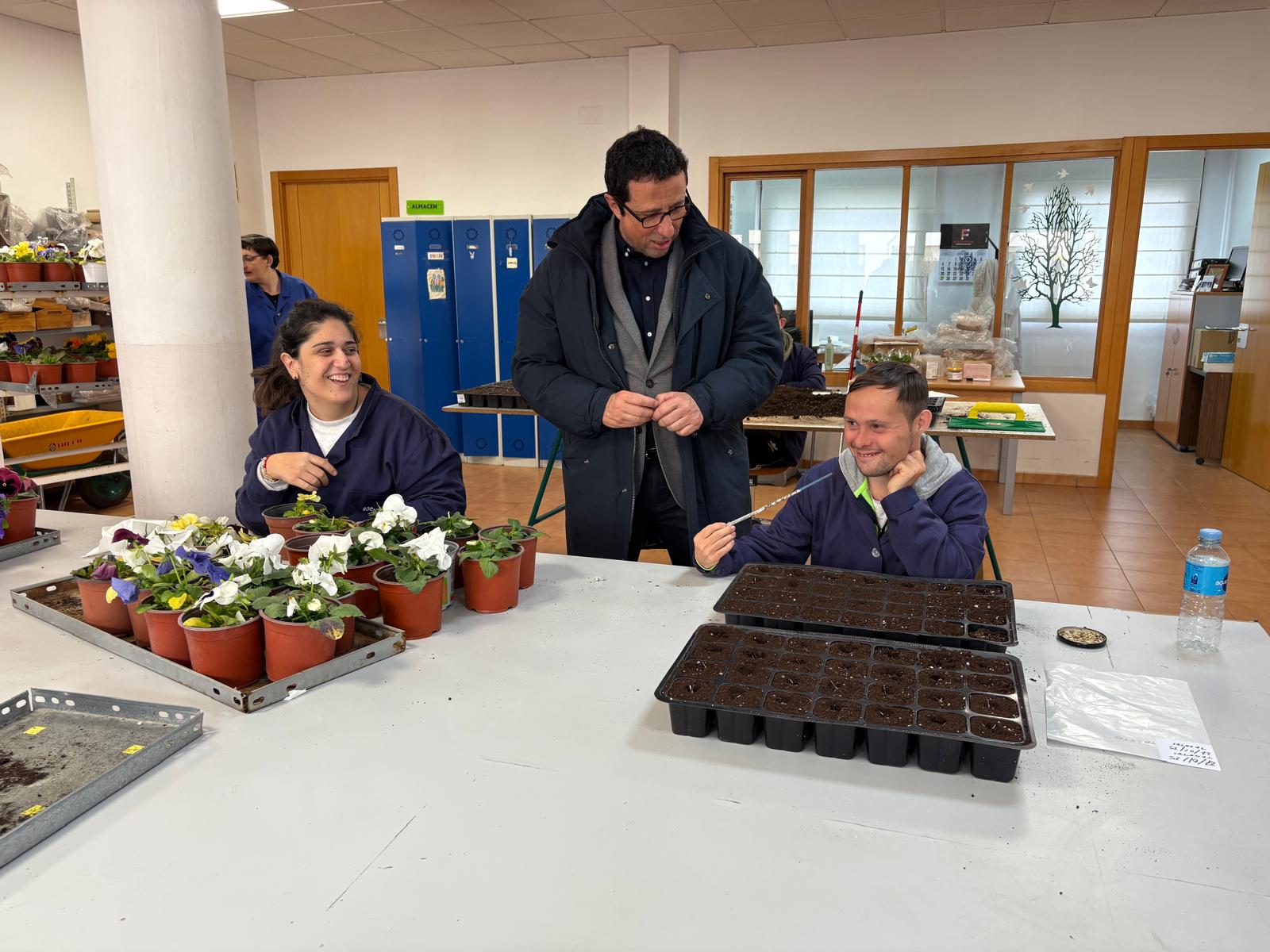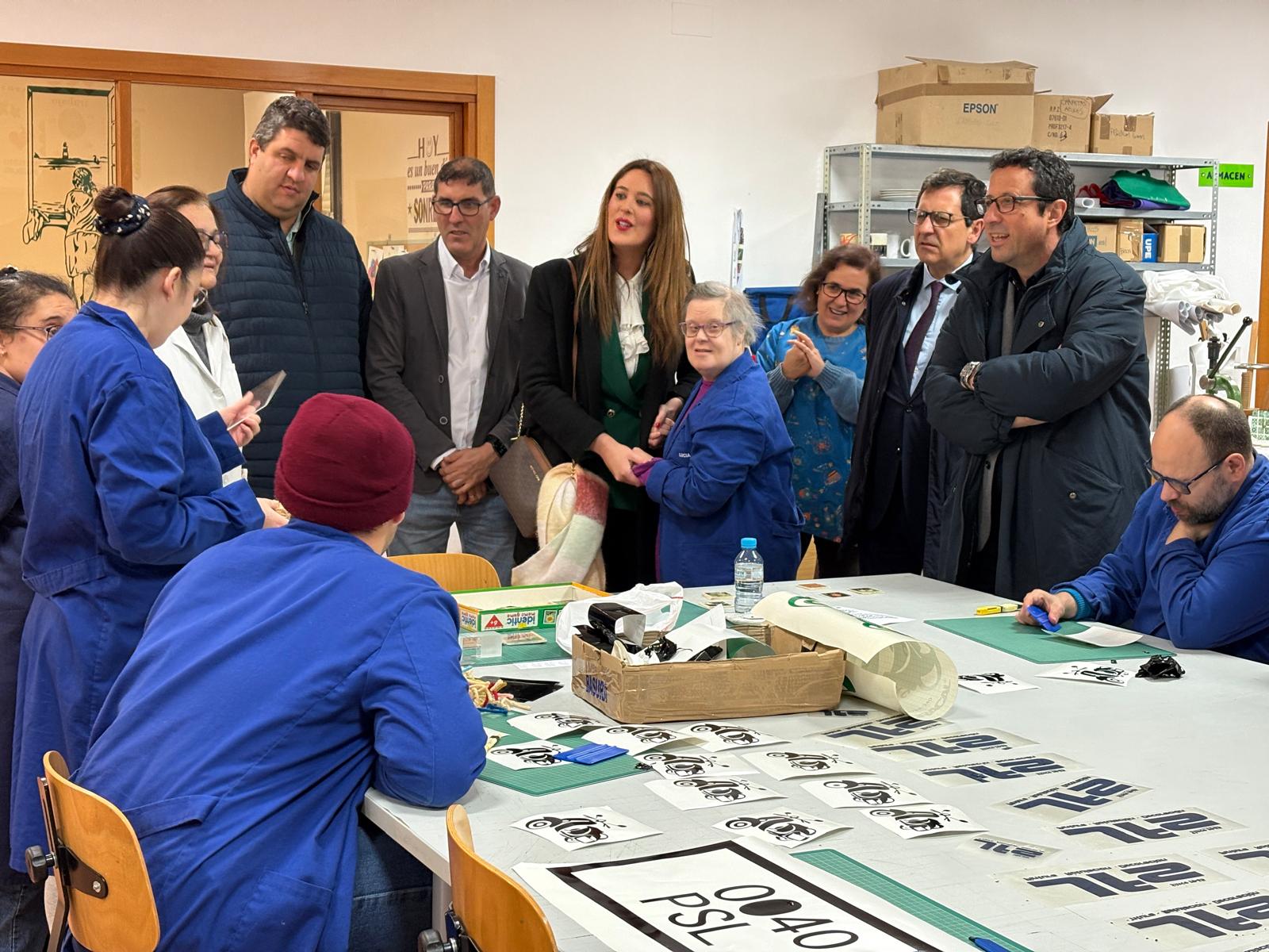El director general de Discapacidad, Francisco José Armenta, junto a Javier Úbeda, coordinador provincial de la Delegación de la Junta en Toledo, Juan Ángel Almonacid, alcalde de Villacañas, Irene Rivera, concejala de Servicios Sociales, y Miguel Ángel Durango, concejal de Atención Ciudadana han visitado el Centro Ocupacional para visitar a los usuarios y felicitar a las ganadoras.