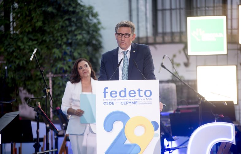Entre otros, el presidente de Fedeto, Javier de Antonio Arribas; el alcalde, Carlos Velázquez; la consejera de Economía, Empresas y Empleo, Patricia Franco; el subdelegado del Gobierno en Toledo, Carlos Ángel Devia, y la presidenta de la Diputación, Concepción Cedillo, han asistido al acto de entrega de los XXIX Galardones Empresariales de la Fedeto.