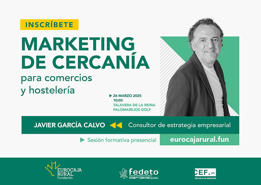 Fundación Eurocaja Rural organiza, en colaboración con Fedeto y el Centro de Estudios Financieros (CEF), una sesión formativa el próximo 26 de marzo, dirigida a comerciantes, hosteleros y otros profesionales interesados en la dinamización del pequeño comercio y la hostelería local, con la finalidad de promover el desarrollo económico y empresarial mediante la innovación y la competitividad.