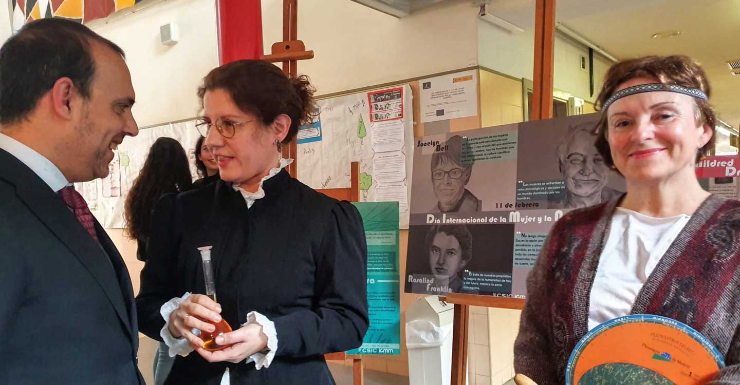 Como digo, son pasos esperanzadores, al que quiero sumar una experiencia realmente motivadora surgida de las aulas de un instituto público de la región, en la que tuve el honor de participar el año pasado. Las profesoras de todas las materias del Instituto Alejo Vera de Marchamalo, en Guadalajara, comenzaron hace unos años a dar clase el 11 de febrero caracterizadas como diferentes mujeres científicas de todos los tiempos. El objetivo era llamar la atención del alumnado y motivarles a conocer la vida y aportaciones de todas esas mujeres borradas de los libros. Lo que comenzó como una actividad espontánea de unas pocas profesoras se ha convertido ya en una fecha esperada en la que participa la práctica totalidad del centro y que permite de forma casi mágica que lleguen a las aulas a contar sus descubrimientos desde Agnódice a Maryam Mizakhani, pasando por Carolina Herschel, Lise Meitner, Jane Goodall, Valentina Tereshkova o Margarita Salas, entre otras.