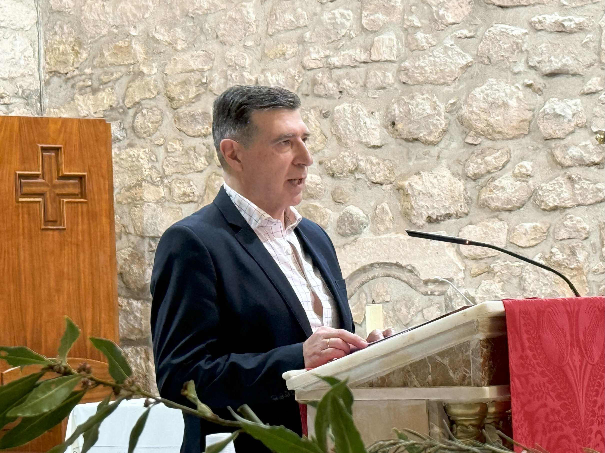 Seguidamente, tomó la palabra Manuel Sesmero Pedraza como pregonero de la Semana Santa 2025. Manuel Sesmero es licenciado en Derecho por la Universidad Nacional de Educación a Distancia y Colegiado ejerciente del Ilustre Colegio de Abogados de Toledo, especializado en Derecho Civil y Laboral. Con una amplia trayectoria profesional, Manuel Sesmero es teniente reserva voluntario del Ejército de Tierra de España desde 2010, lo que le une especialmente a la Hermandad de San Sebastián, de la que forma parte y colabora. En su interesante y cercano pregón, hizo un recorrido por la Pasión de Cristo, la importancia de las Cofradías en Semana Santa y el valor de la música procesional en estos días. Sesmero destacó que “la evolución de la Semana Santa no se puede concebir sin la música, porque la música ayuda a los fieles a seguir la historia y a comprender su significado. La música es capaz de trasmitir sentimientos de dolor, sufrimiento, arrepentimiento y esperanza; y es habitual que muchos se sientan conmovidos y lloren durante las procesiones”.