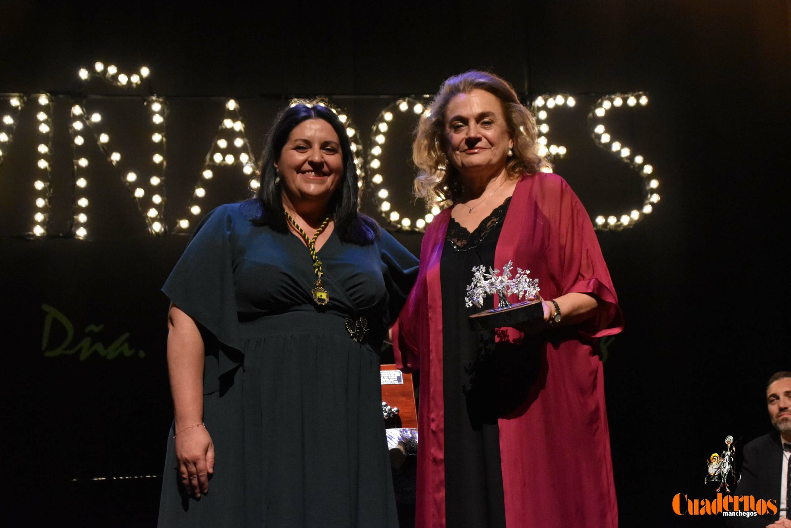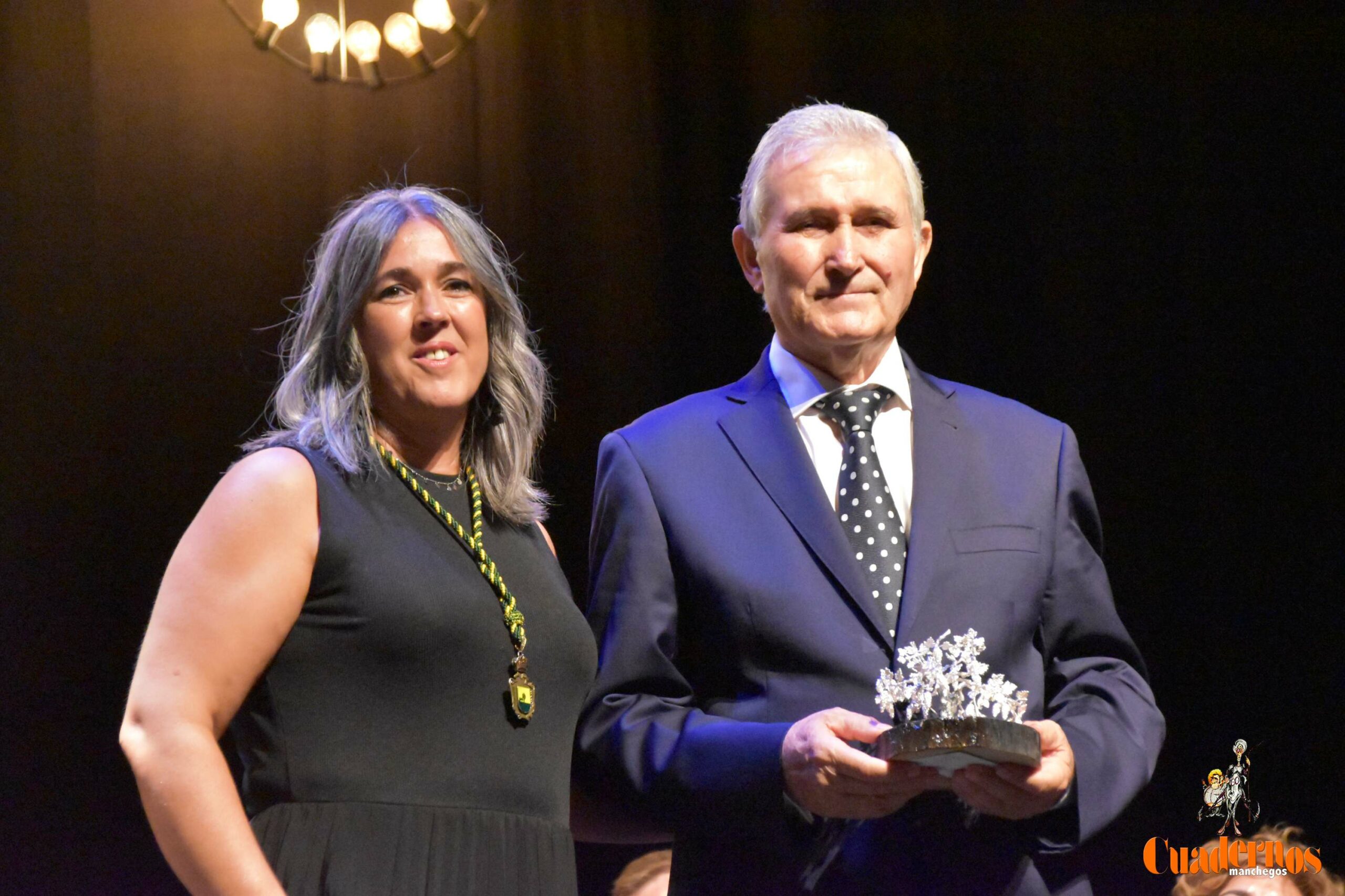 La ceremonia, presidida por el alcalde Javier Navarro y la concejala de Cultura Inés Losa, tuvo un ritmo más ágil que en años anteriores y rindió tributo a quienes, desde distintos ámbitos, han contribuido a engrandecer el nombre de Tomelloso: Cristina González de la Cruz (Economía), Centro Tractor SL (Agricultura), Antonio López López (Acción Social), Rocío Torres (Cultura) y la Parroquia de la Asunción de Nuestra Señora (Viñador de Honor) en su 450º aniversario.