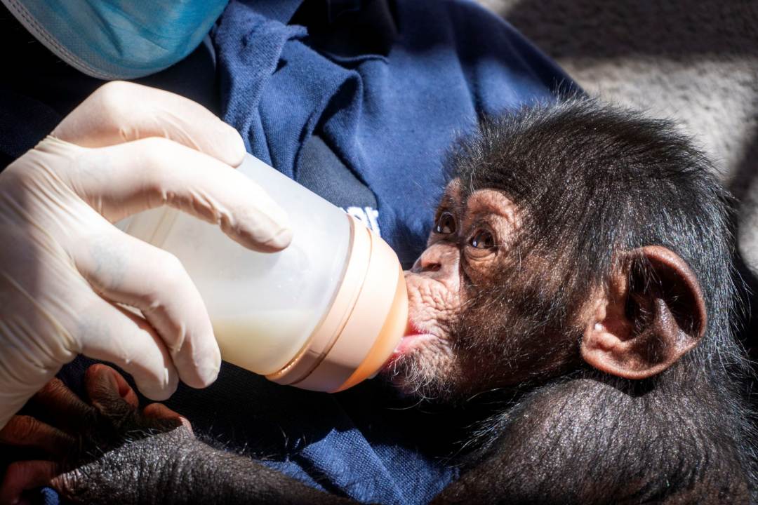 Tras su nacimiento llegó el primer reto pues, por las dificultades que presentó para criarlo su madre Eva, el personal especializado en primates tuvo que actuar urgentemente para salvarle la vida. En coordinación con el grupo de conservación europeo comenzó un delicado proceso para alimentarlo mediante biberones y mantenerlo bajo cuidado humano el mínimo tiempo posible hasta que pueda integrarse con su grupo familiar. Siguiendo los protocolos para fomentar su desarrollo lo más natural posible, el pequeño permanece próximo a sus congéneres, para que puedan verse, olerse o escucharse. De hecho, incluso ha comenzado a vocalizar, marcando cómo se comunicará en la edad adulta. En este sentido, parece que el nombre elegido es idóneo pues Ekon muestra gran fortaleza y su evolución está siendo muy positiva. Supera ya los tres kilos de peso y cada vez es más observador y curioso, por lo que recientemente el equipo técnico ha comenzado a aproximarlo al recinto exterior en la zona que recrea la selva africana, así como a exponerlo a más baños del beneficioso sol.