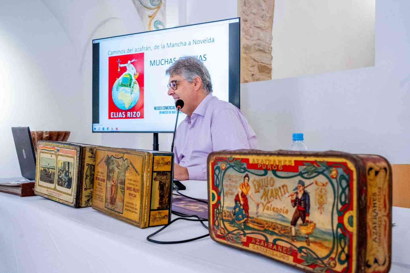 Unos mercados que estos comerciantes “supieron leer muy bien” y para los que crearon marcas y envases apropiados. De este modo, entre las latas antiguas para la exportación que ha mostrado hoy, hay algunas decoradas con motivos especiales de la cultura india, como pueden ser animales como los elefantes o los toros, y otras en las que los motivos quijotescos son los protagonistas. En todas ellas, el origen La Mancha, como símbolo de prestigio, se repite. “En Novelda los comerciantes se preocuparon por saber comprar y también por saber vender”, ha dicho.