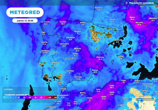 Samuel Biener, experto de Meteored España, explica que esta depresión será absorbida de forma inminente por una vaguada, de la cual se desgajará una nueva dana o gota fría este lunes. las lluvias intensas.
