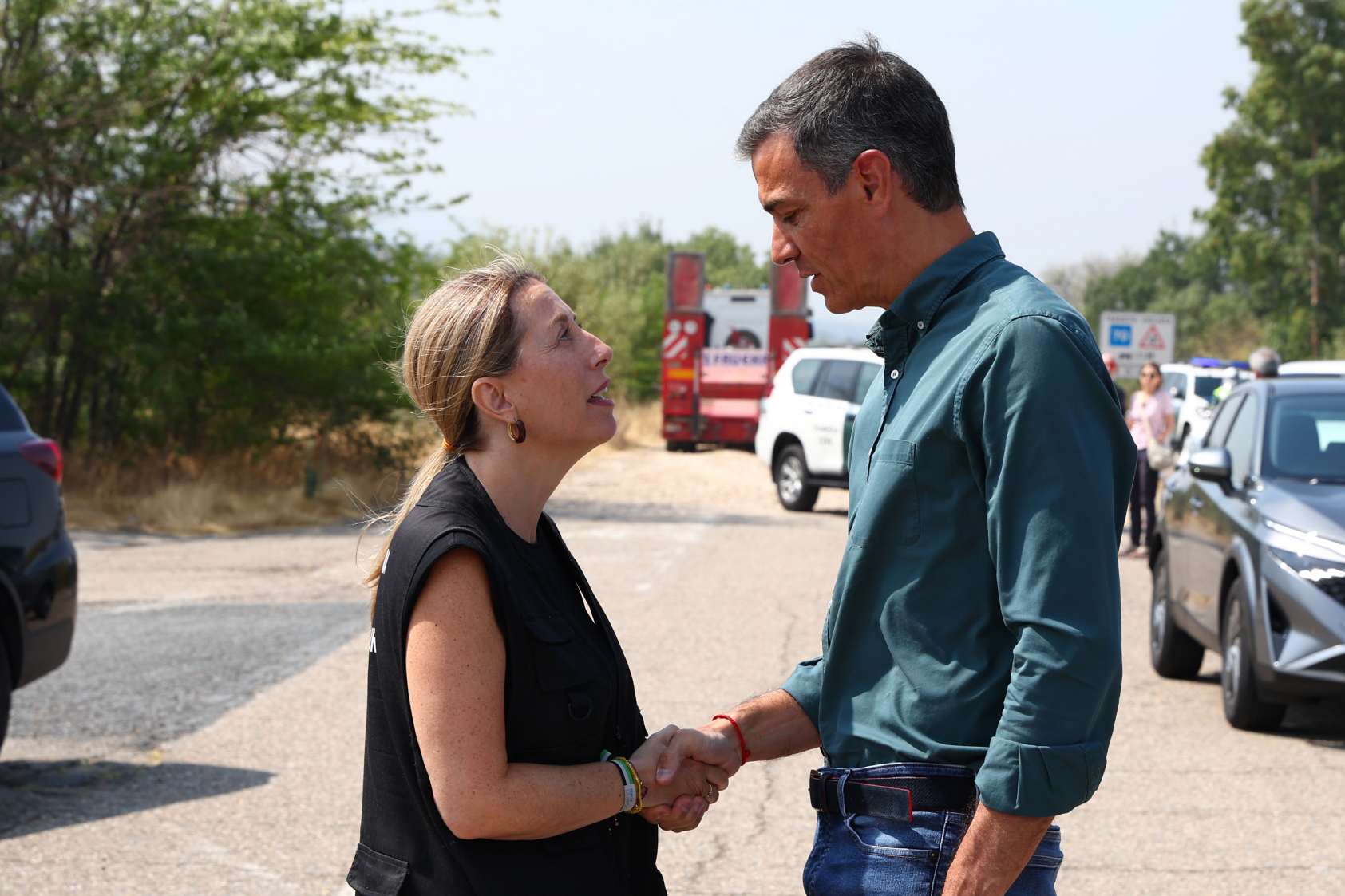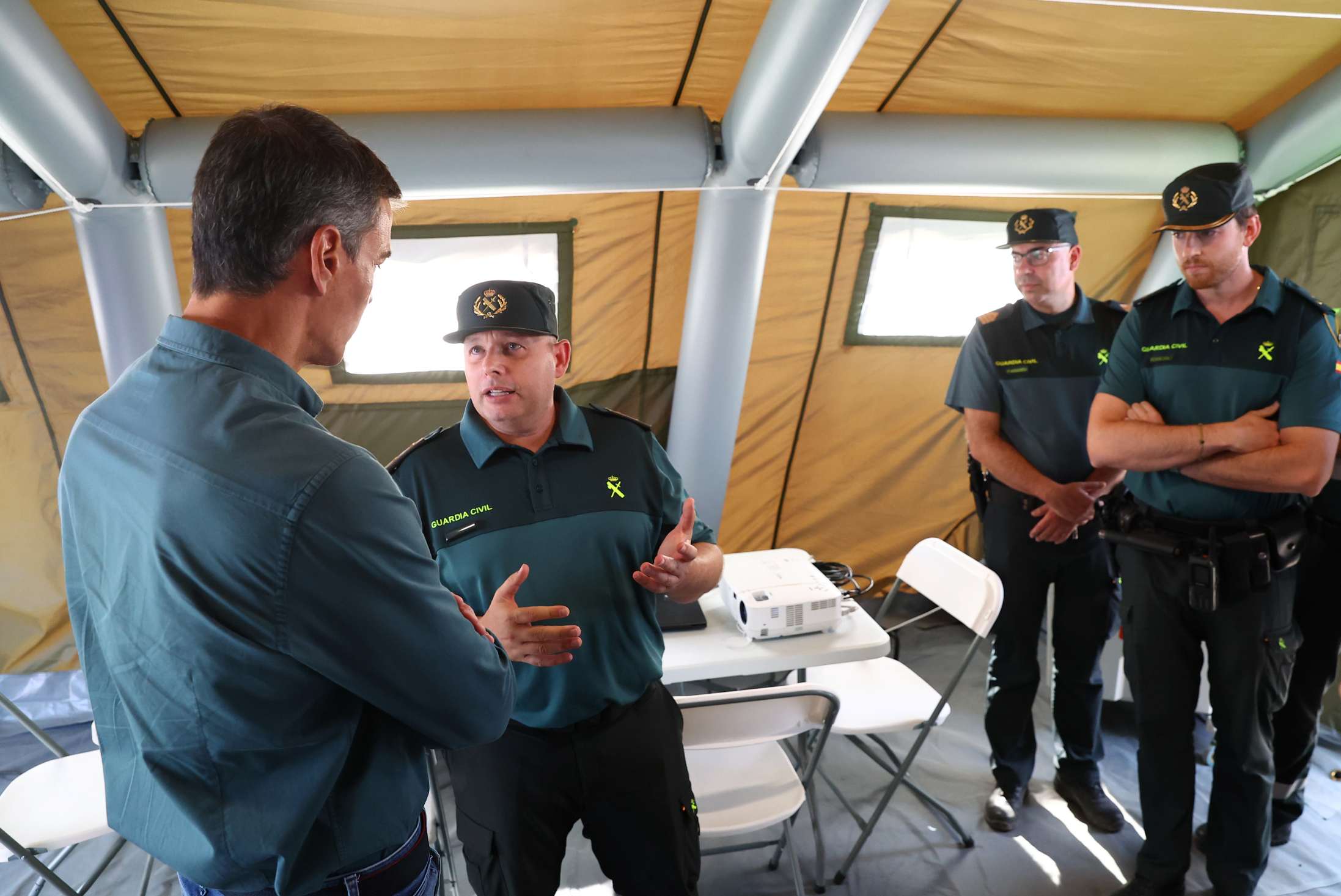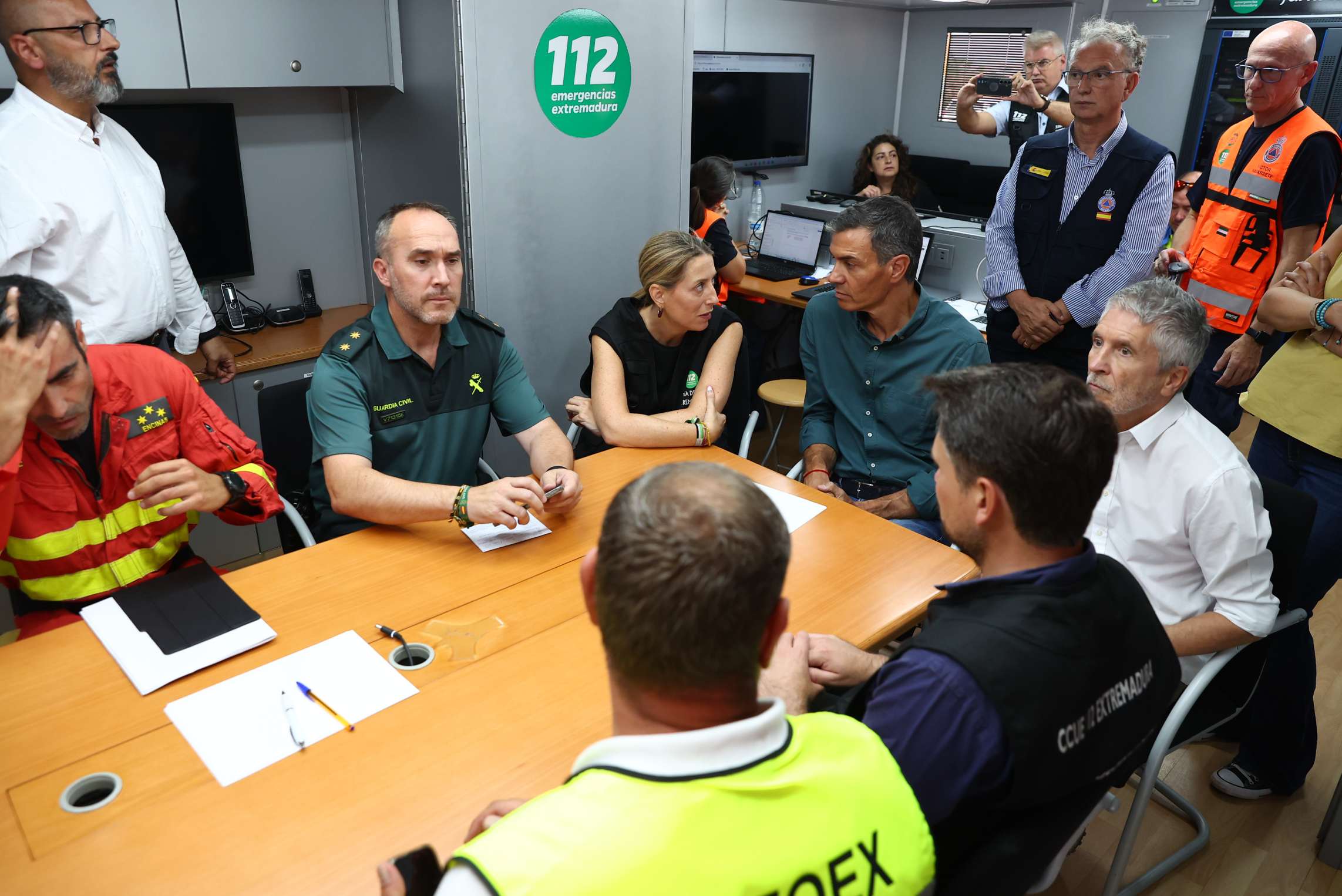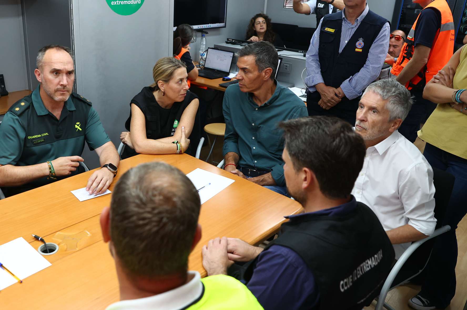 Desde el Puesto de Mando Avanzado de La Granja, en Cáceres, y acompañado de la presidenta de la Junta de Extremadura, María Guardiola; del ministro del Interior, Fernando Grande-Marlaska, y del delegado del Gobierno en Extremadura, José Luis Quintana, el jefe del Ejecutivo ha insistió en que “el sistema de Protección Civil y el Gobierno de España han estado desde el primer momento a disposición de la Junta de Extremadura para afrontar esta tragedia”,