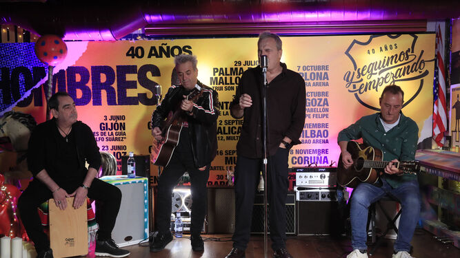 Antes de conocer a Rafa, Javi, Dani y yo habíamos estado ensayando en un local horrible que regentaba un legionario minusválido con muy mala leche que nos agarraba del cuello si nos retrasábamos dos días en pagar el alquiler. Allí empezamos a aprender a tocar juntos, a familiarizarnos con los instrumentos prestados que teníamos pasando las tardes de invierno haciendo ruido y soñando con nuestra música, escapando por unas horas de la vida real. Rafa tocaba con muchas bandas a la vez, colaboraba con unos y con otros, pero cuando ya se incorporó definitivamente a nuestro grupo de amigos empezamos a trabajar en serio y nacieron los Hombres G.