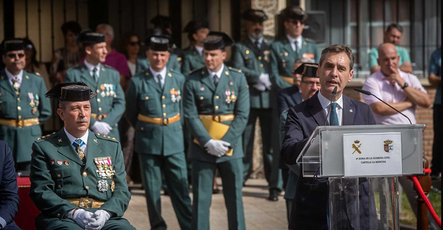 No quiero dejar pasar la ocasión, como delegado del Gobierno de España en Castilla-La Mancha, para felicitarla en esta fecha tan señalada y agradecer públicamente la protección y seguridad prestada a los ciudadanos de la región y el amparo que ofrece al ejercicio de nuestros derechos y libertades.