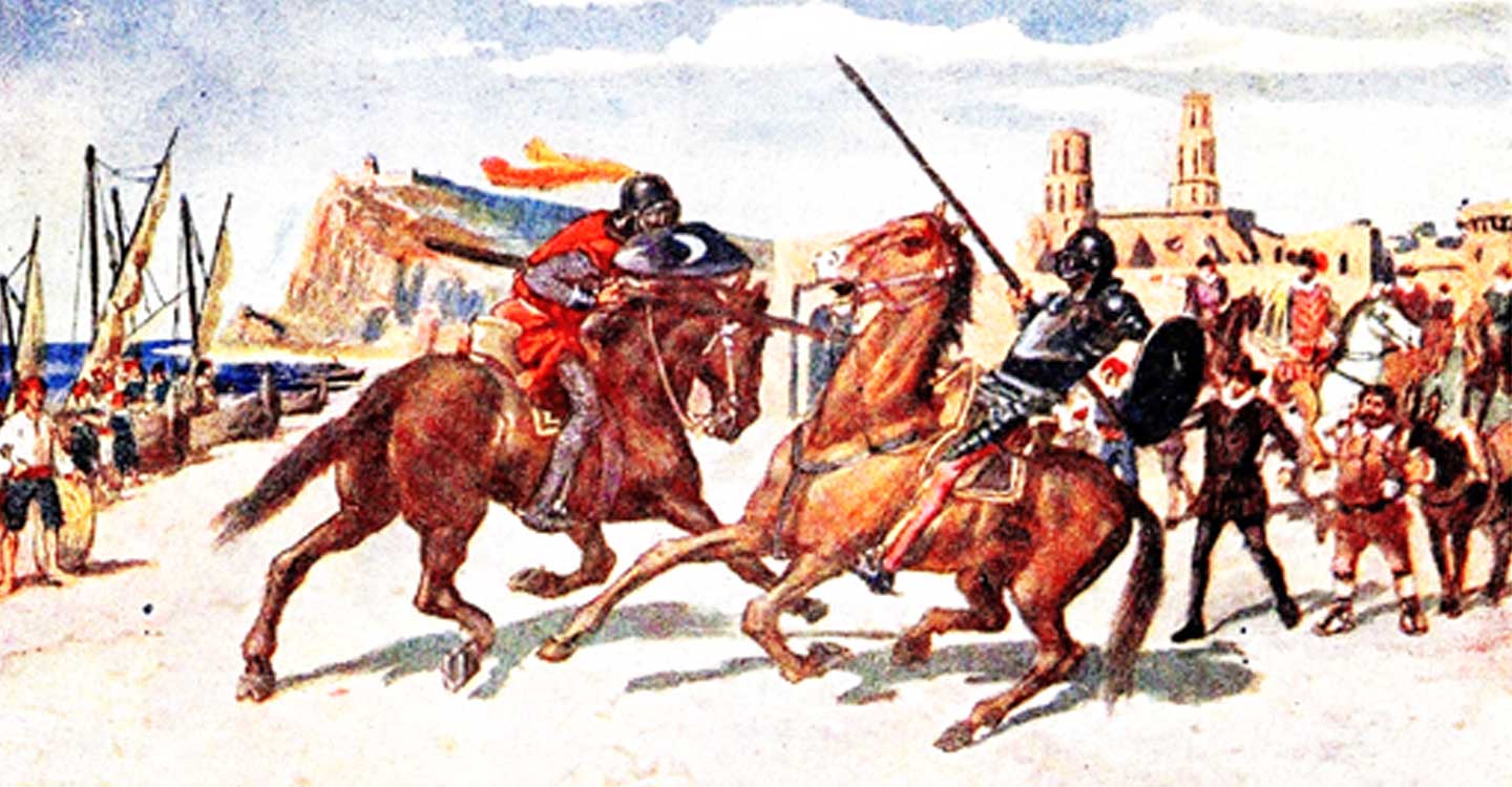 La propuesta era colocar una estatua en la playa de la Barceloneta, donde aconteció «la aventura que más pesadumbre dio a don Quijote de cuantas hasta entonces le habían sucedido»: su derrota frente al Caballero de la Blanca Luna. No se me ocurre un lugar mejor. Ahora bien, desconozco el diseño de la estatua propuesta. ¿Otro busto? ¿Una de cuerpo entero? ¡Qué poca originalidad! Nada mejor que dos caballeros abalanzándose uno contra el otro, lanza en mano, como en la ilustración aportada por Jaume Pahissa para la lujosa edición de Miquel Seguí de 1897. Que yo recuerde, no hay nada así en el mundo.
