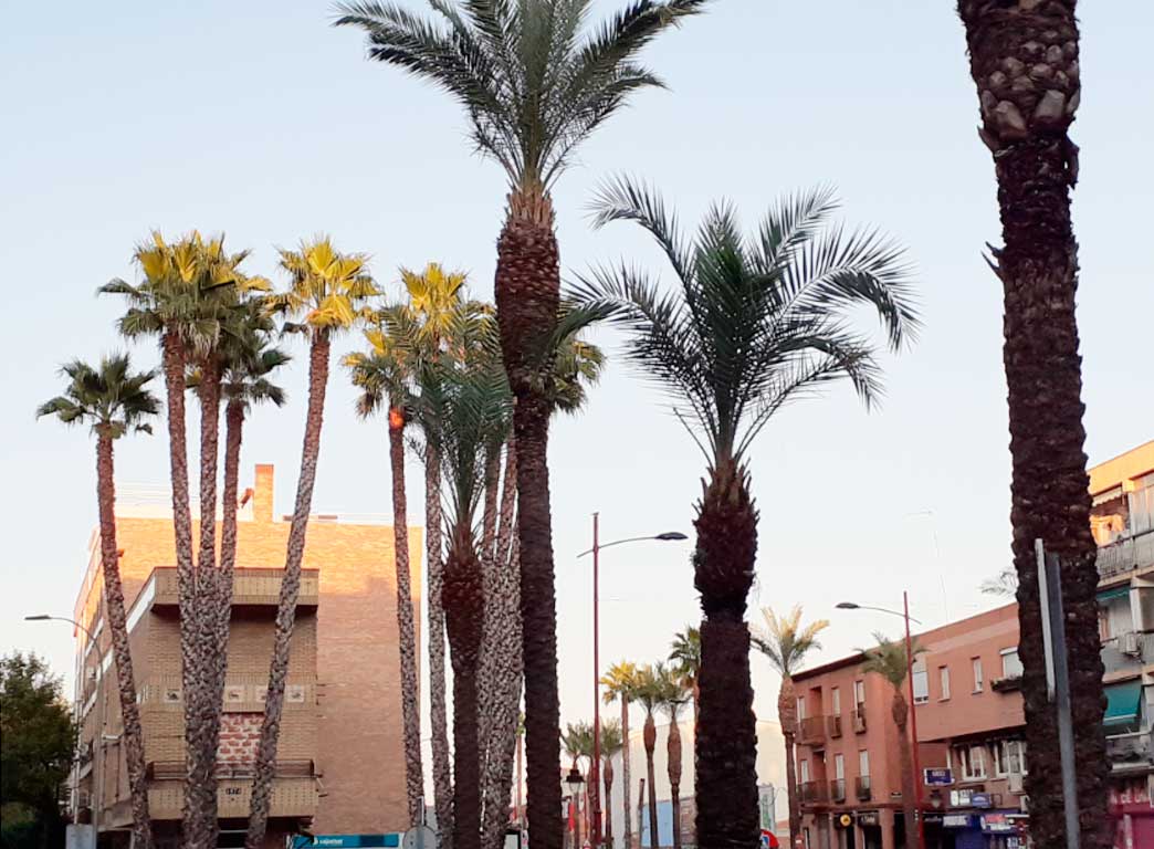 Cuando se acerca el mediodía, las calles se quedan casi desiertas y las chicharras están dándolo todo con su monótono y rutinario sonido. Solo algún despistado baja por el bulevar amparándose en la sombra de los bloques y los árboles.