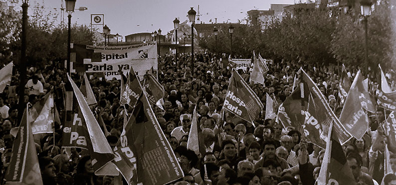 Le cuento que, si mal no recuerdo, la última gran manifestación en nuestra ciudad fue cuando demandábamos la construcción de un hospital, y ya ha llovido desde entonces. También le aclaro a Ramona que el propósito y la planificación de la reivindicación estuvo liderado principalmente por los dirigentes locales, eso sí, arropados por las entidades sociales de la villa. En fin, que los vecinos solo tuvimos que poner las pancartas en los balcones, asistir a las concentraciones y agitar las banderolas en la Puerta del Sol.