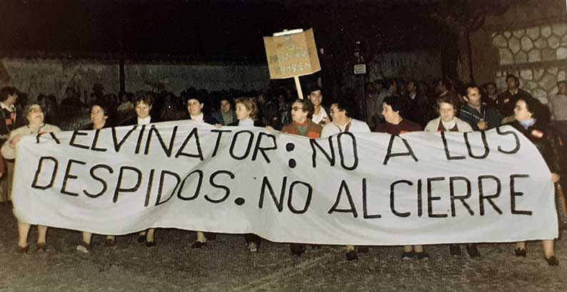 Había algunas fabricadas con viejas sábanas y pintadas a mano sobre la lucha obrera y los conflictos laborales de las grandes empresas como Kelvinator. También sobre las movilizaciones para mejorar los convenios colectivos en CASA o de las huelgas en el sector de la madera en los primeros años ochenta.