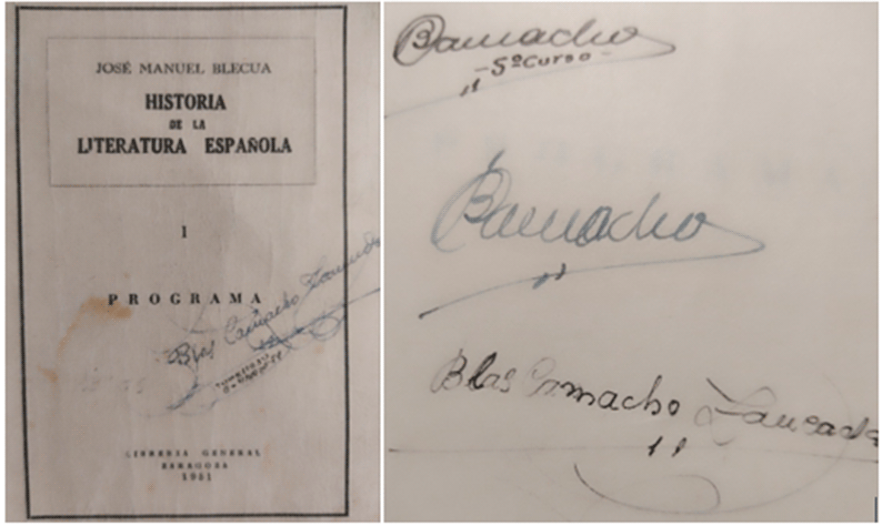 Continuamos extractando, ordenado y describiendo parte de los sensacionales documentos hallados entre páginas de los libros recuperados de un contenedor de residuos. Del conjunto de “papeles” recuperados; incluidas apolilladas y roídas páginas del diario ABC., de 24 de marzo de 1936, que se encontraban como separadores de páginas en volúmenes de mayor formato, lo que más nos ha sorprendido, ha sido un cuaderno u opúsculo de pequeño formato, de Historia de la Literatura Española, en el que aparecen anotaciones, nombre y apellidos del abogado y varias veces diputado, natural de Tomelloso, Blas Camacho Zancada, (Tomelloso, 24 de diciembre de 1939, Madrid, 27 de enero de 2021), en sus años de colegial; librillo que estamos haciendo todo lo posible para que el empresario Isidoro Ramírez, lo entregue a los familiares de Blas Camacho.