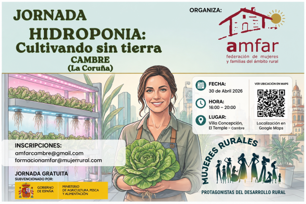 La Federación de Mujeres y Familias del Ámbito Rural (AMFAR) celebra mañana, 30 de abril, en la localidad gallega de Cambre, una jornada técnica dedicada a la Hidroponía, una innovadora y sostenible técnica de cultivo. El evento, bajo el título «Hidroponía: Cultivando sin tierra», tendrá lugar en Villa Concepción (El Temple) de 16:00 a 20:00 horas.