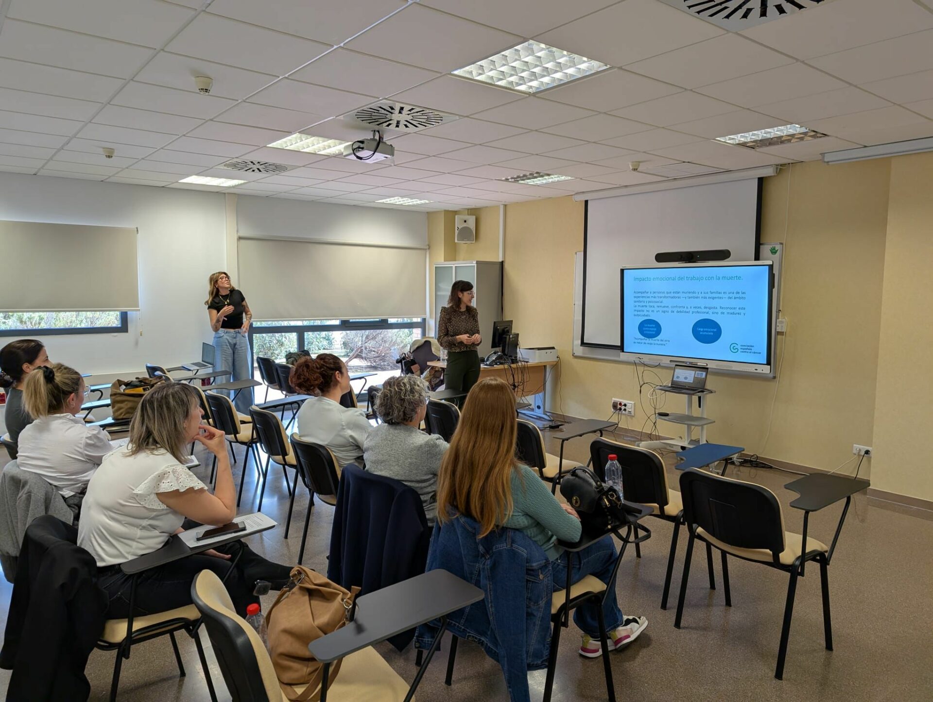 El curso ha sido impartido por Rocío Mora Ruíz, trabajadora social, y Carmen Pilar López Chacón, psicóloga, quienes han guiado una sesión participativa dirigida a profesionales sanitarios. A lo largo de la formación, se han abordado cuestiones vinculadas a la comunicación con pacientes y familias, el acompañamiento emocional y el autocuidado de quienes cuidan, tres pilares fundamentales cuando se trabaja en procesos de final de vida.