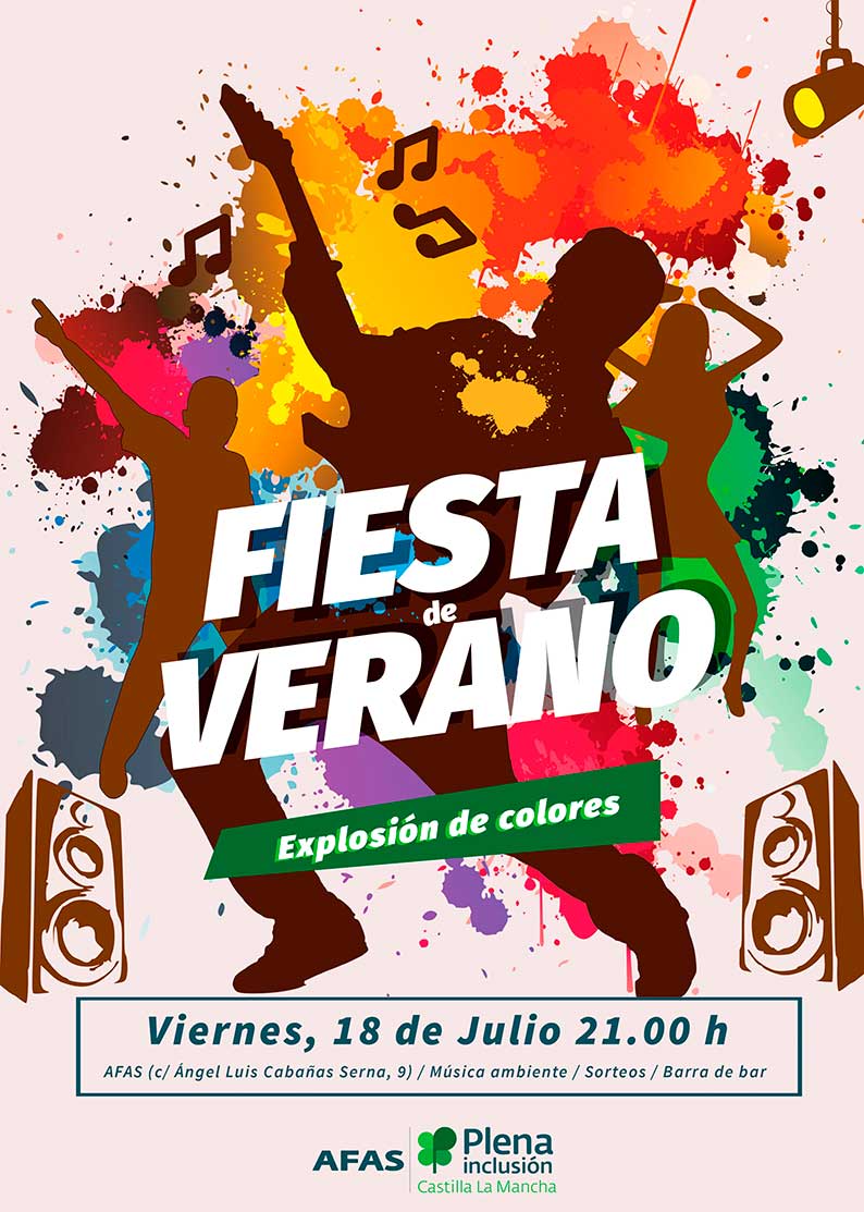 El viernes 18 de julio, a partir de las 21:00 horas, las instalaciones de AFAS en Tomelloso (calle Ángel Luis Cabañas Serna, 9) se transformarán en un escenario de color, música e inclusión con motivo de la celebración de la Fiesta de Verano, bajo el lema «la explosión de colores» y cuyo objetivo es fomentar la convivencia e inclusión de las personas con discapacidad y sus familias.