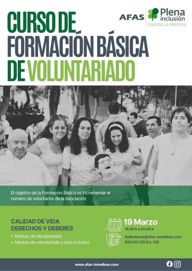 Con esta propuesta, la asociación pretende ampliar su red de voluntariado y seguir fomentando la participación ciudadana en iniciativas que promueven la inclusión y la mejora de la calidad de vida de las personas con discapacidad. El curso está concebido como una primera aproximación al voluntariado, ofreciendo a los participantes una visión general del trabajo que desarrolla la entidad y del papel que desempeñan las personas voluntarias.