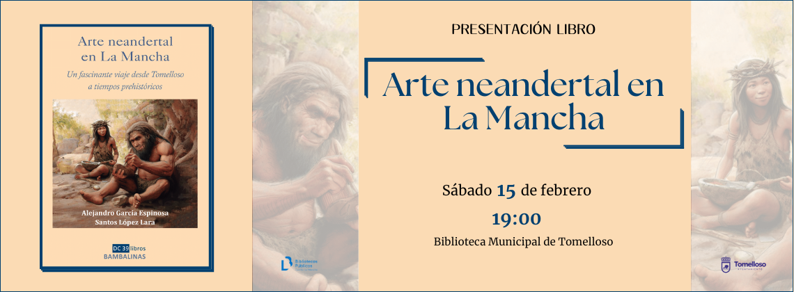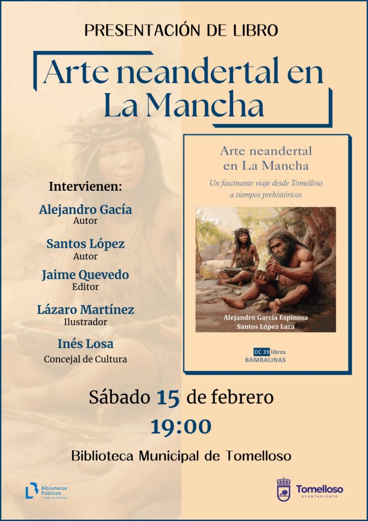 En la Biblioteca Municipal de Tomelloso tendrá lugar la presentación del libro: «Arte Neandertal en la Mancha: Un fascinante viaje desde Tomelloso a tiempos prehistóricos», de Alejandro García Espinosa y Santos López Lara el próximo sábado 15 de febrero a las 19:00 horas en el Salón de Actos de la Biblioteca Municipal de Tomelloso.