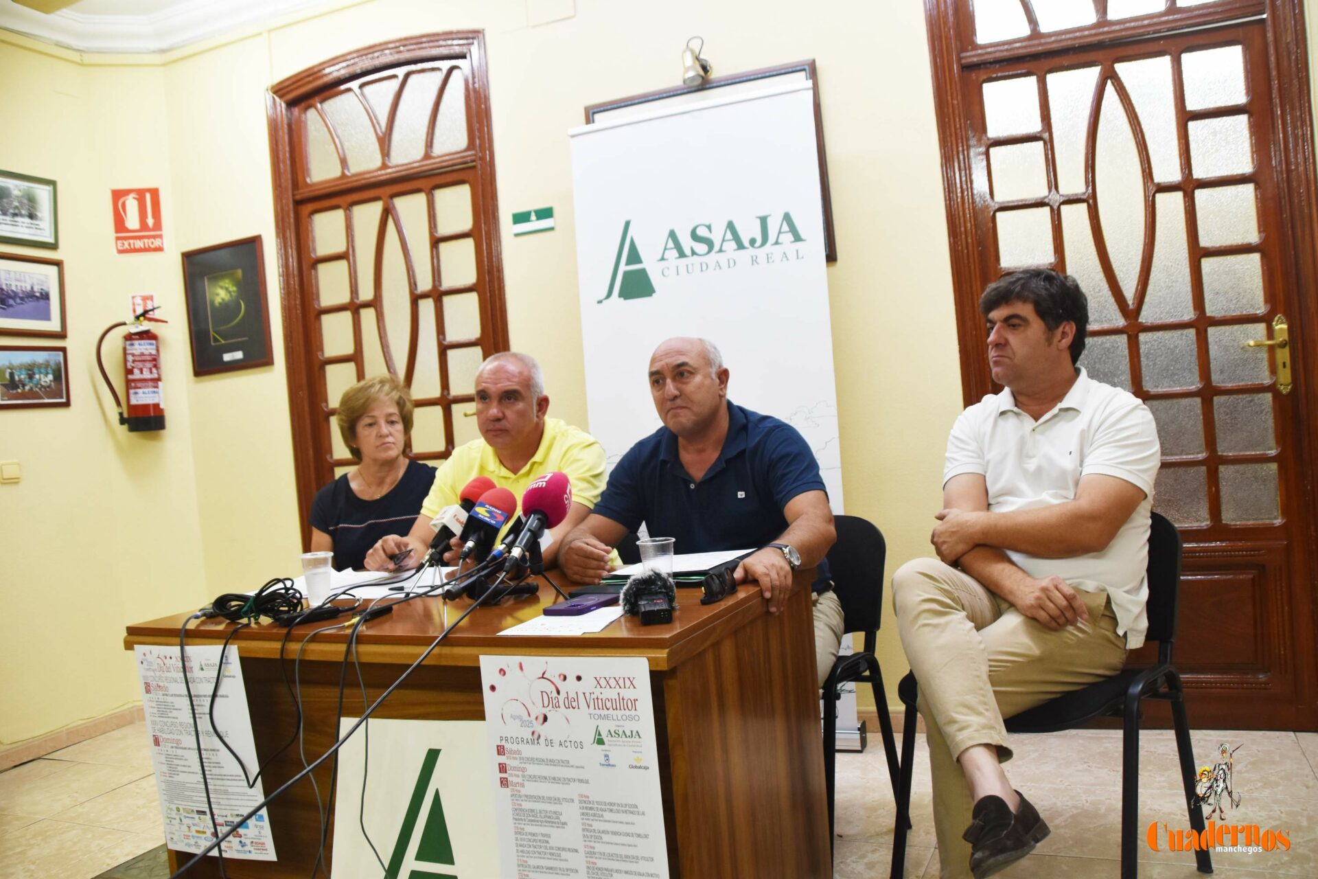 Florencio Rodríguez, secretario general de ASAJA Ciudad Real y Emilio Cepeda, presidente de ASAJA Tomelloso han intervenido para dar algunos datos de la vendimia hoy en la presentación del XXXIX Día del Viticultor.
