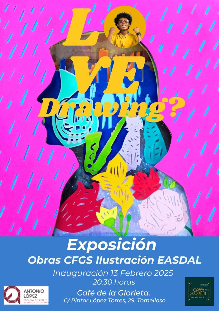 El alumnado del Ciclo Formativo de Grado Superior de Ilustración de la EASDAL, invita a que el público disfrute con ellos mismos, con sus obras experimentales y de aprendizaje, que expondrán en el café de la Glorieta, Calle Pintor López Torres, 29, de Tomelloso. En este emblemático refugio del Arte y la Cultura, desean compartir con todos vosotros sus inquietudes artísticas hechas realidad, representaciones del mundo a través de los ojos de jóvenes estudiantes llenos de ilusiones e incertidumbres.