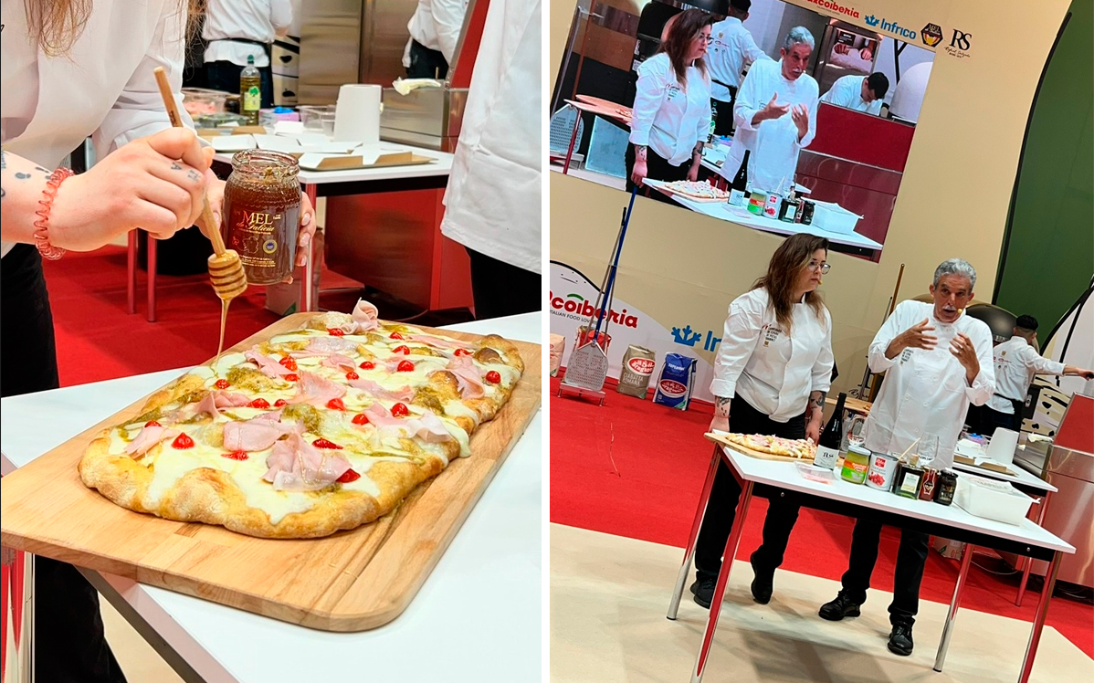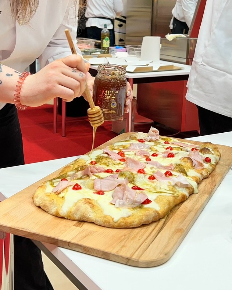 En paralelo, los fogones se ponían en marcha en los escenarios. El 4º Campeonato de España de Pizzas Gourmets by DO Ribera Sacra arrancaba con Jesús Marquina como maestro de ceremonias y la presentación de la Pizza Oficial diseñada por el pentacampeón del mundo con Miel IGP Galicia, aceite Rafael Salgado y que armonice con los vinos DO Ribeira Sacra.