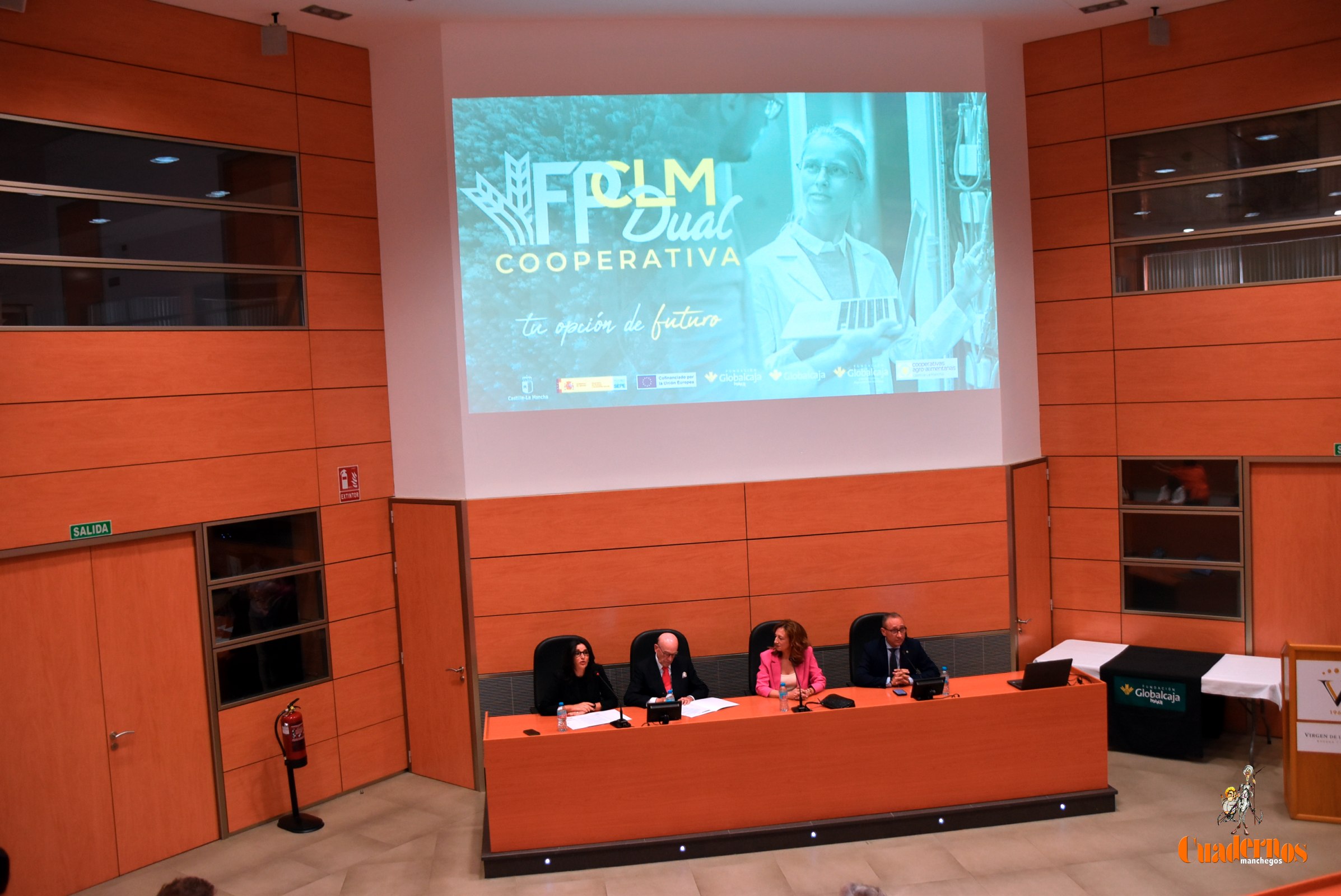 Esta mañana se ha clausurado la cuarta edición de la FP Dual Cooperativa, una iniciativa promovida por Globalcaja y su Fundación Globalcaja HXXII con la Junta de Comunidades de Castilla-La Mancha y Cooperativas Agro-alimentarias Castilla-La Mancha para que el alumnado conozca, de mano de expertos profesionales, las particularidades de las empresas cooperativas y las oportunidades laborales que ofrecen. Han acompañado a los 22 alumnos y alumnas participantes la directora general de Innovación Educativa y Centros del Gobierno de Castilla La Mancha, M° Dolores Pérez Pintado; el presidente y la directora de Compromiso de Globalcaja y directora general de la Fundación Globalcaja HXXII, Rafael Torres Ugena y Carla Avilés: y Juan Miguel del Real, director de Cooperativas Agro-alimentarias Castilla-La Mancha.