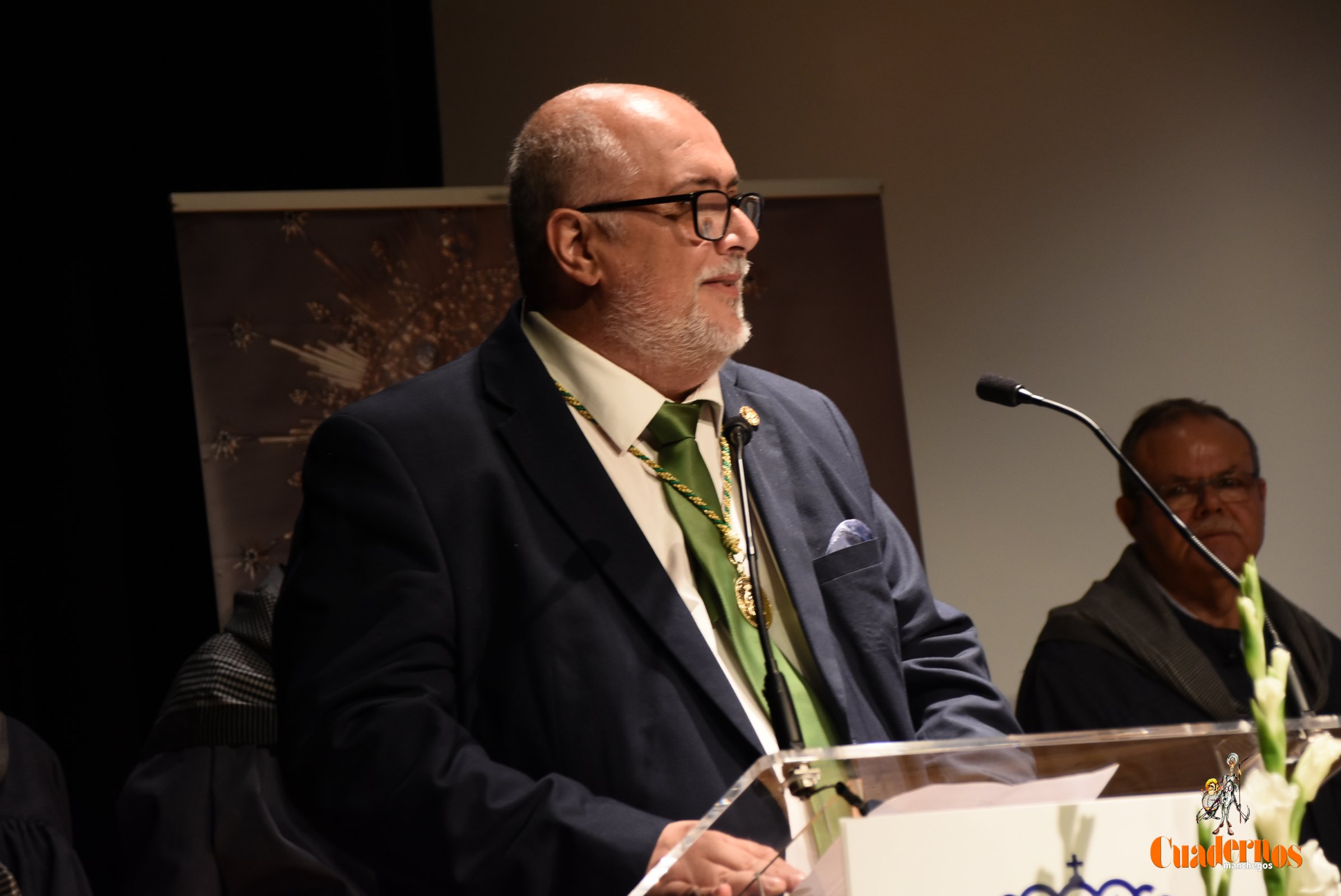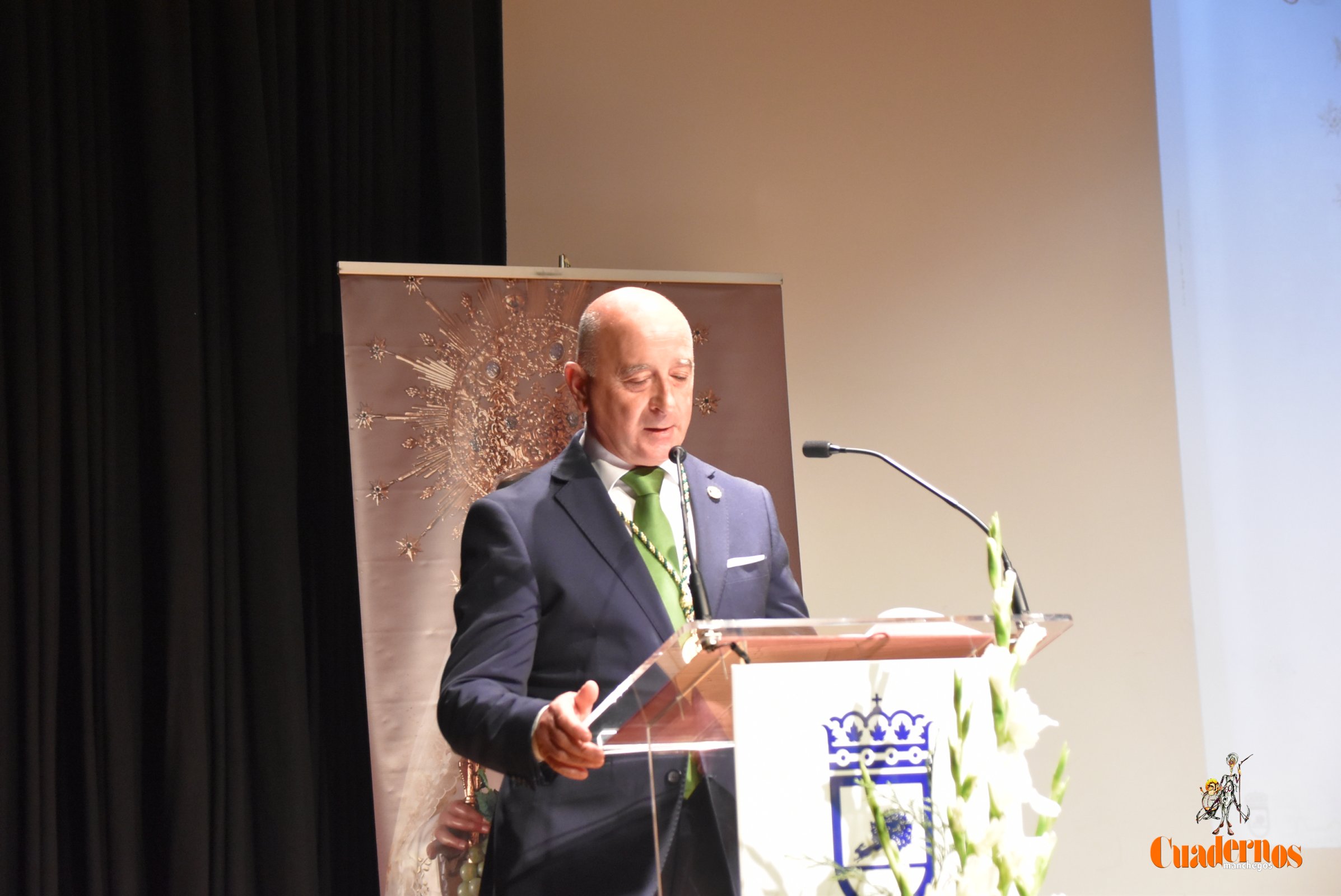 El acto que ha tenido lugar en el Auditorio López Torres de la localidad, ha sido dirigido por Pedro García Ocaña y donde han estado presentes concejales del equipo de Gobierno con Javier Navarro a la cabeza; concejales del PSOE de Tomelloso; la pregonera, Elena Jiménez; el mayoral, Javier Perales; el presidente de la Hermandad de la Virgen de las Viñas; Alejandro Ramírez y miembros de su Junta directiva; la mayorala saliente, Esther Belló y miembros del tejido asociativo de la ciudad.