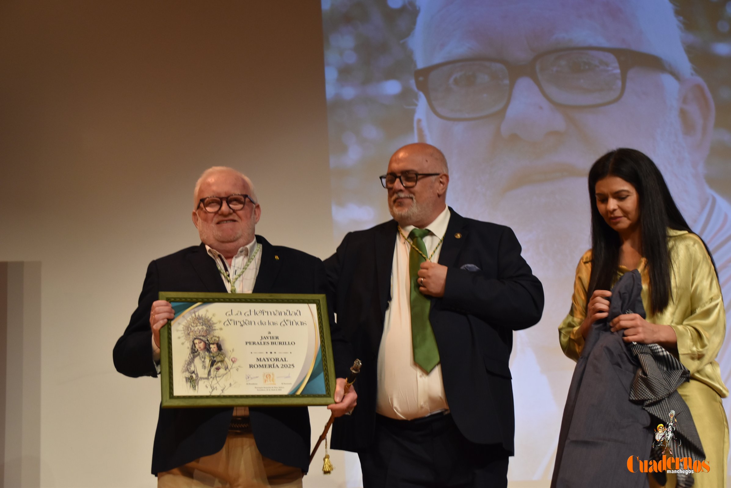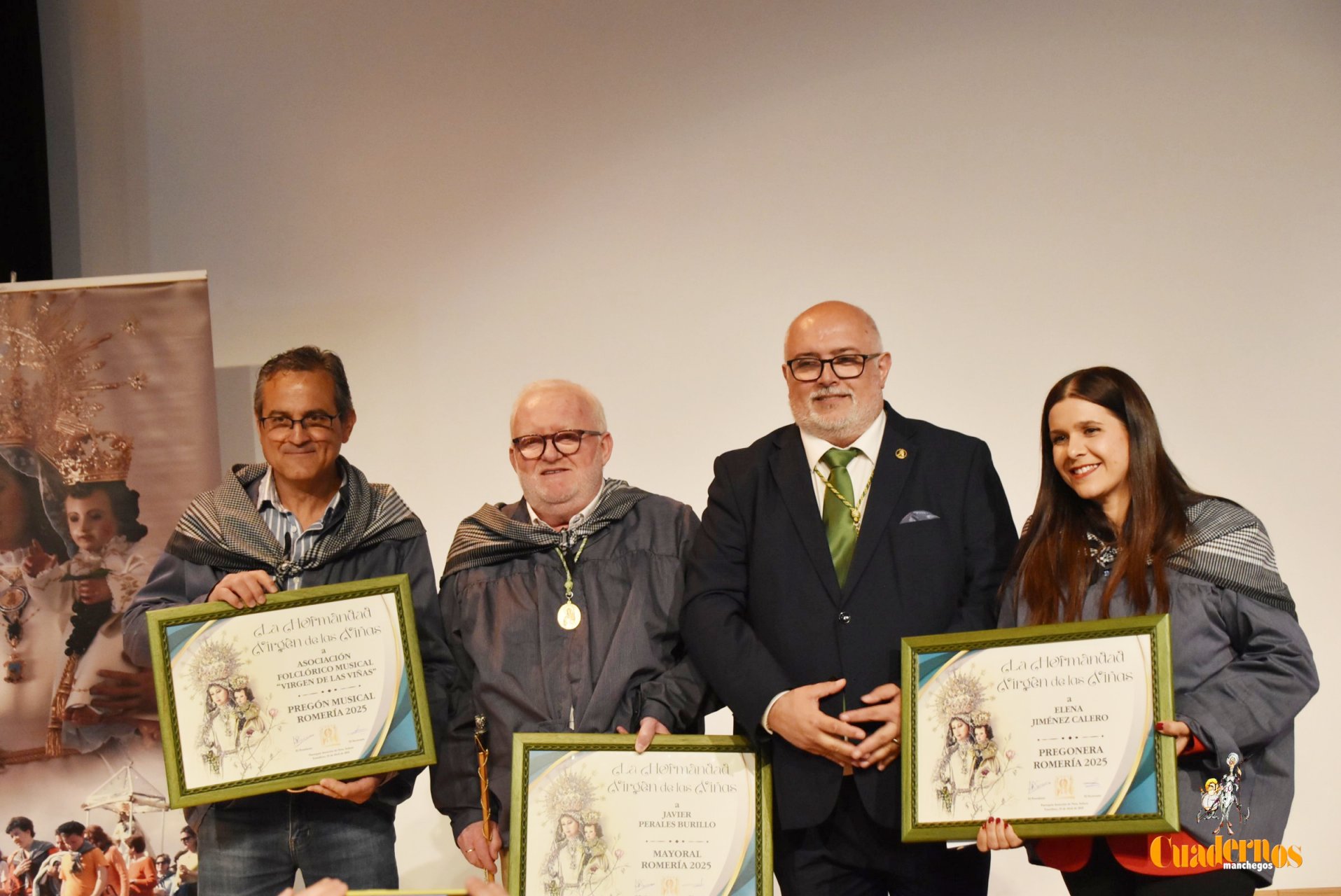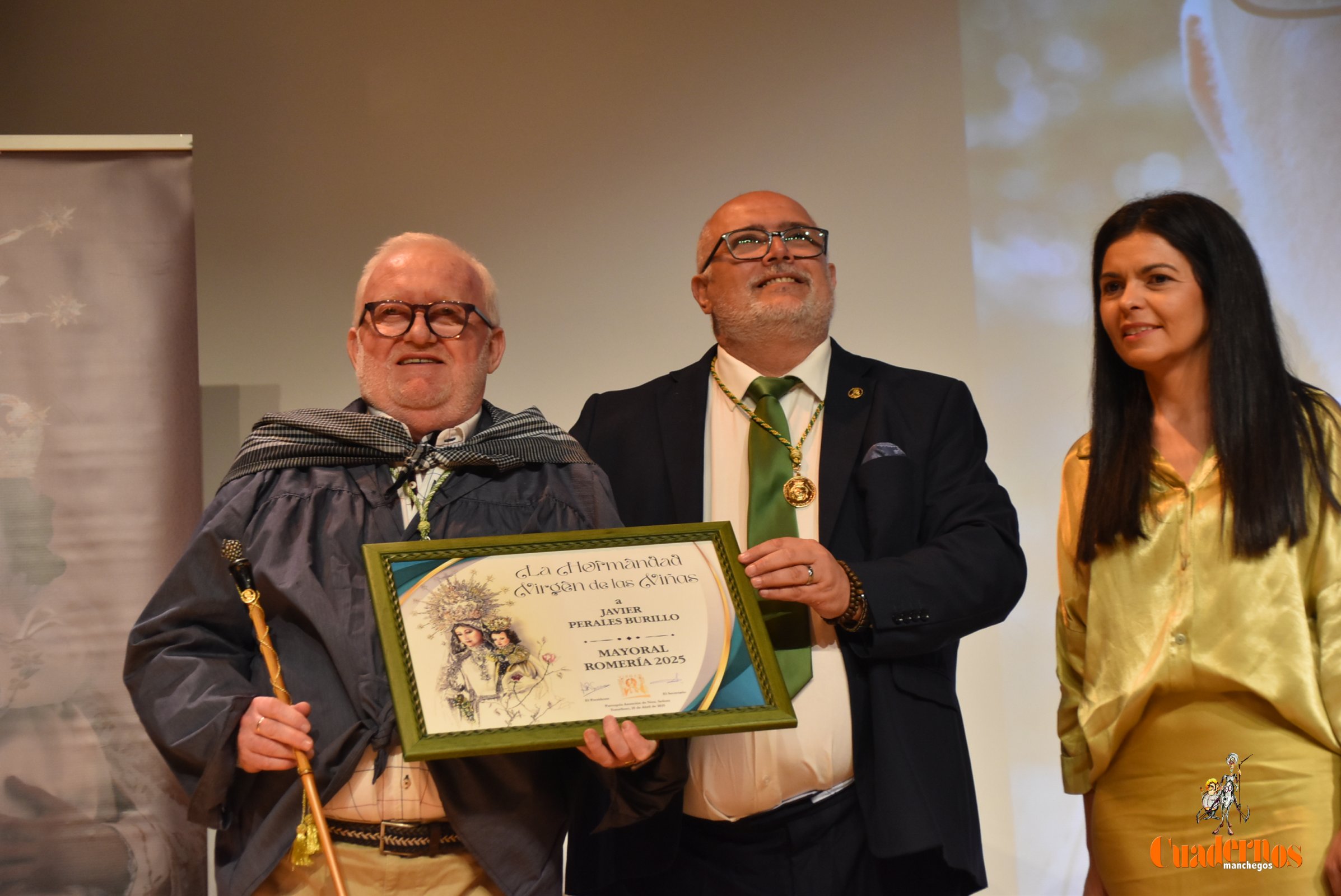 Tras el pregón, la mayorala saliente de la Romería 2024, Esther Belló, ha cedido la vara a Javier Perales que como mayoral de la Romería 2025 afirmó que suponía mucho, pues recordó que siempre había estado al  lado de la Virgen de las Viñas, con la gran oportunidad de haber tenido el privilegio de ser miembro en sus inicios de la Junta Directiva de la hermandad, posteriormente presidente y de nuevo el placer de ser pregonero y, este actual nombramiento, suponía  el momento culminante de su recorrido y demostraba todo su agradecimiento a la Junta Directiva, con una “tremenda emoción  de estar con mi patrona”, porque suponía ser lo más grande.