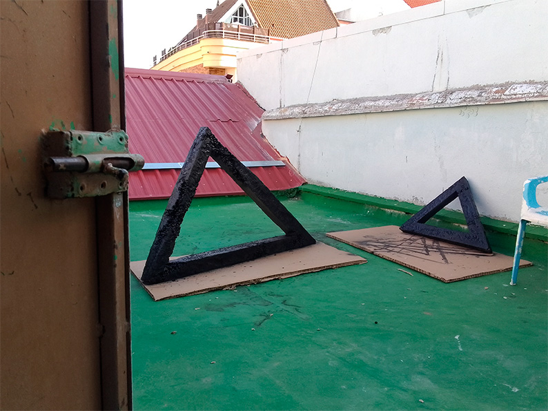 Uno de los aspectos más interesantes del proceso productivo de Origen está en la elección de la roca volcánica. Carmen Belén Serrano Serrano recurre a este material porque sabe que ayuda a aligerar el peso del hormigón y, por tanto, a reducir de manera considerable la carga total de la obra. Esa decisión no es menor. En una pieza de estas características, cada elemento cuenta, y el diálogo entre materia y estructura resulta decisivo para garantizar estabilidad, solidez y coherencia formal.