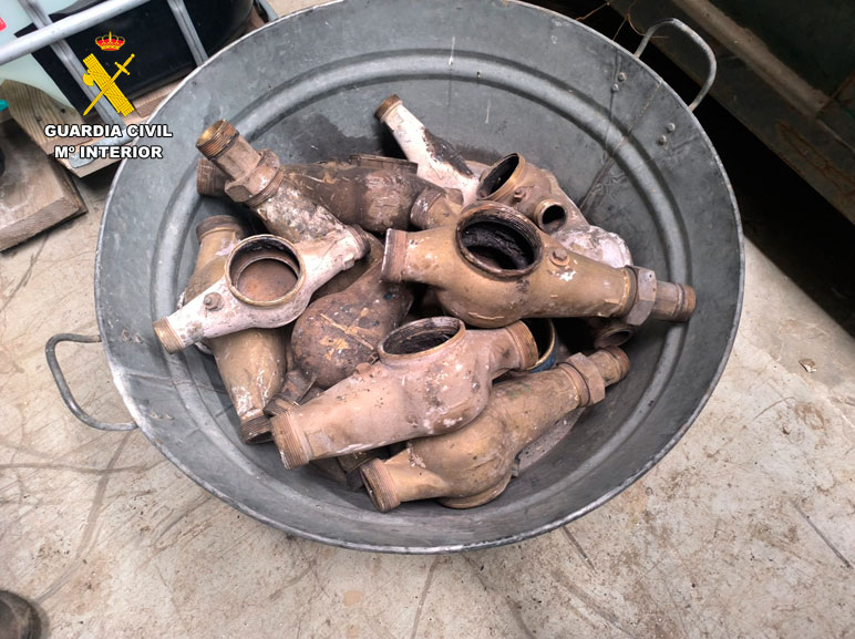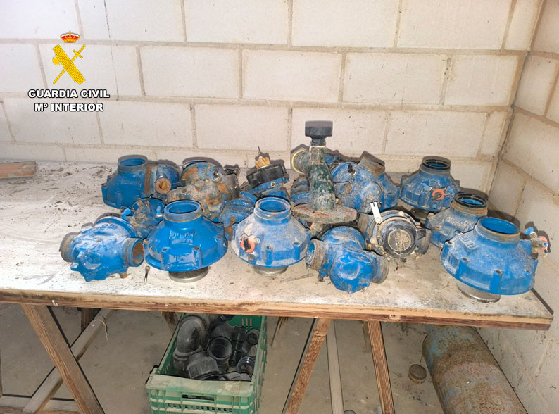 Los objetos hurtados consistieron en caudalímetros de riego de numerosas parcelas y explotaciones agrarias, diferentes elementos relacionados con el riego como rodetes de bombas de extracción de agua, envolventes de contadores, baterías, etc. En total la cifra de caudalímetros hurtados asciende a 44 unidades, 16 rodetes de bombas de extracción de agua y diferentes efectos de todo tipo relacionados con sistemas de riego.