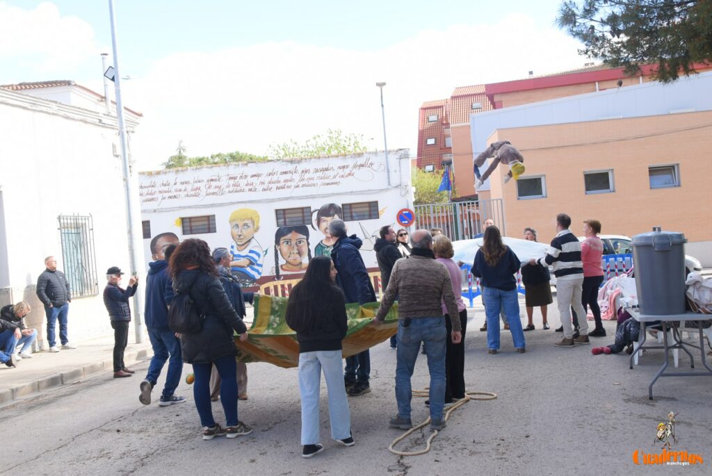 De esta forma, lo explicaba el presidente del Barrio de Maternidad de la ciudad de Tomelloso, Antonio Ligero, que aclaró que el manteo del pelele es una tradición recuperada por el barrio y que se celebra en el Domingo de Resurrección y donde, «cada año viene más gente para conocerla. Nos gusta porque se cantan cosas picantonas, canciones antiguas donde las personas con más edad nos las recuerdan».