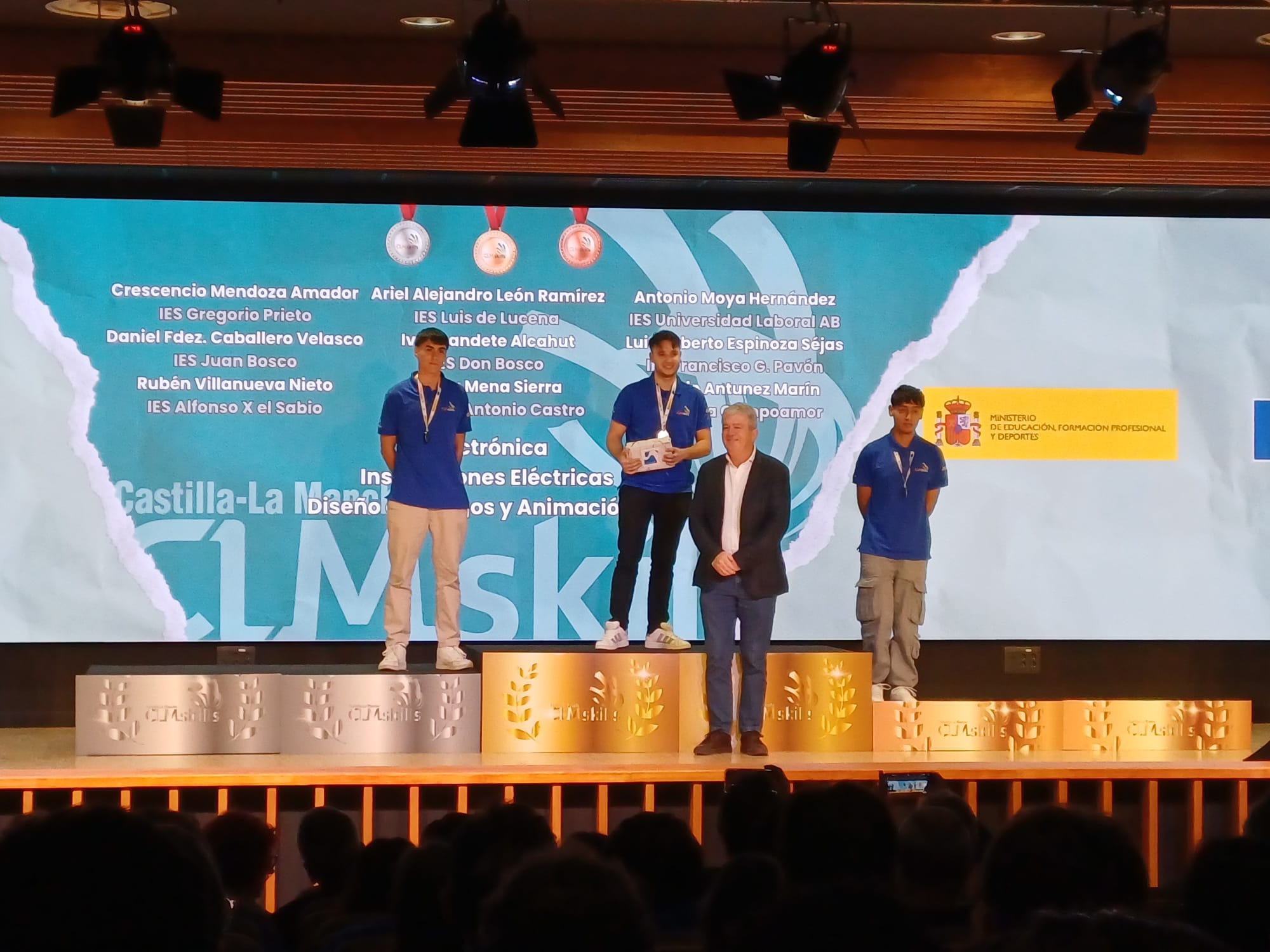 El segundo gran logro del IES García Pavón en los #CLMSkills2025 fue la medalla de bronce en la categoría de Instalaciones Eléctricas y Automáticas. Este reconocimiento pone de manifiesto la solidez de la formación en instalaciones eléctricas y automáticas, campos fundamentales en el mundo actual, donde la demanda de profesionales altamente capacitados sigue creciendo. La precisión, el conocimiento técnico y la habilidad para resolver problemas complejos fueron claves para alcanzar este importante resultado.