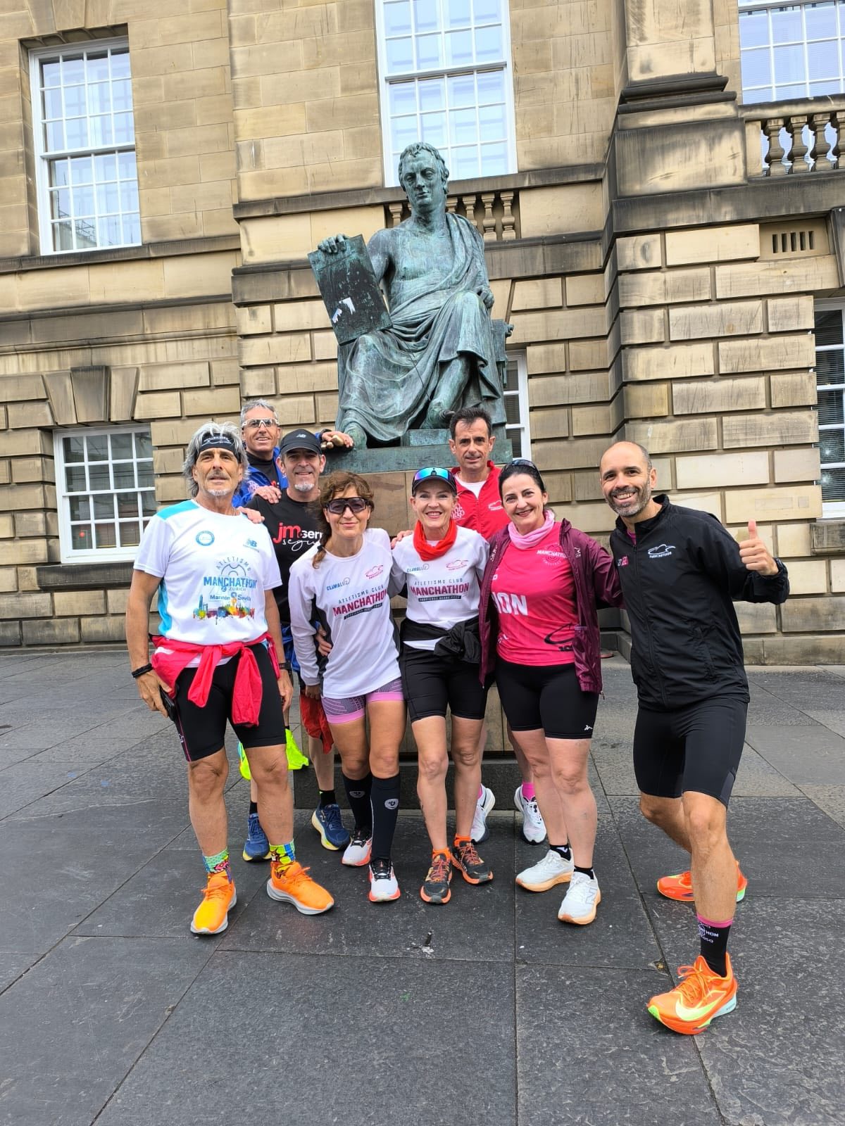 Desde el MANCHATHON nos sentimos muy orgullosos de todo nuestro EQUIPO, desde los 7 Manchathones que han participado en la competición de Edimburgo como de los compañeros de Tomelloso que también participaron en los 42’195 Kms y que hicieron grupo viajando en la misma expedición junto con los familiares que sin participar se han esforzado en arropar, mimar y animar durante el fin de semana y durante las 12 semanas de preparación específica.