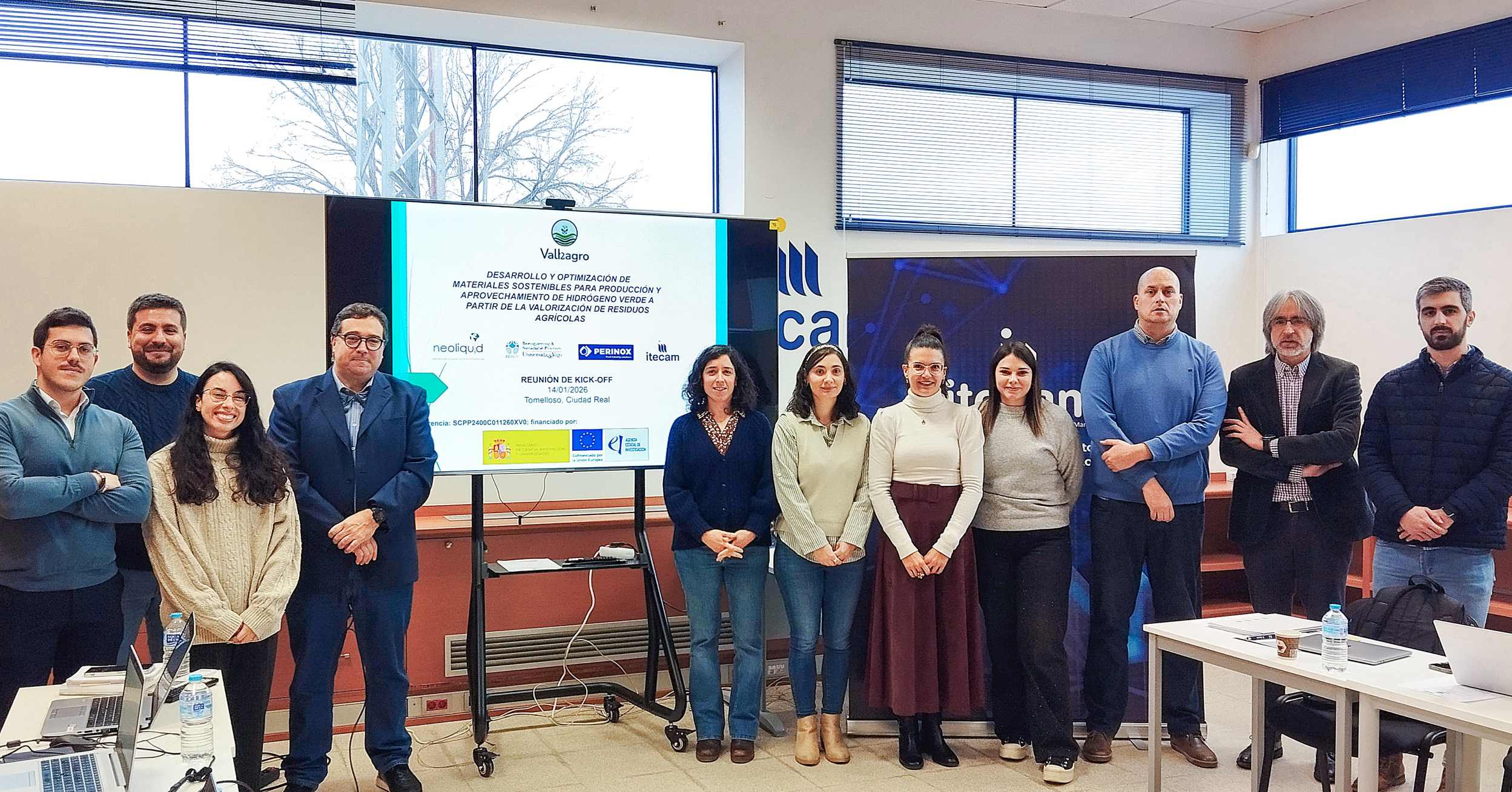 Esta mañana se ha celebrado la reunión de lanzamiento del proyecto VALHAGRO, una iniciativa estratégica orientada al desarrollo de una nueva generación de hidrógeno verde a partir de residuos agrícolas y aguas residuales agroindustriales. Este proyecto, coordinado por la empresa asociada al Centro Tecnológico Neoliquid, cuenta con la participación de la Universidad de Vigo, Perinox e Itecam. El encuentro ha tenido lugar en las instalaciones de Itecam (Centro Tecnológico Industrial de Castilla-La Mancha), en Tomelloso (Ciudad Real).