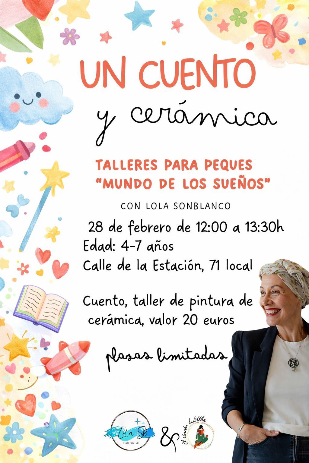 De la mano de Lola Sonblanco, la actividad se convierte en un recorrido donde cuento y creación artística se dan la mano. El taller, anunciado como parte de “Mundo de los sueños”, combina narración con pintura de cerámica, permitiendo que cada participante transforme una idea en una pieza propia. En palabras de la presentación, se trata de una experiencia en la que “los sueños toman forma” y en la que cada peque puede llevarse a casa algo hecho por él mismo.