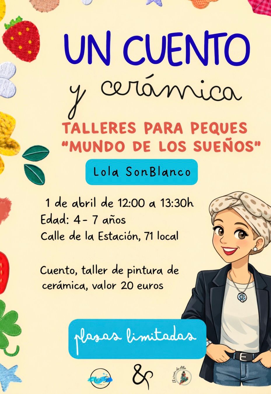 De la mano de Lola Sonblanco, la actividad se convierte en un recorrido donde cuento y creación artística se dan la mano. El taller, anunciado como parte de “Mundo de los sueños”, combina narración con pintura de cerámica, permitiendo que cada participante transforme una idea en una pieza propia. En palabras de la presentación, se trata de una experiencia en la que “los sueños toman forma” y en la que cada peque puede llevarse a casa algo hecho por él mismo.