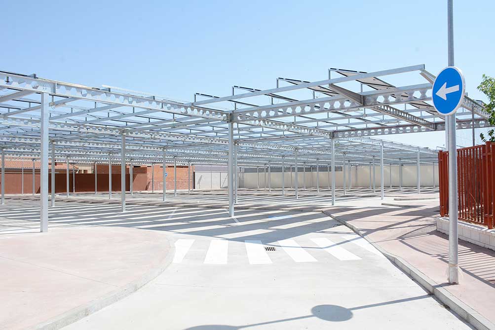 El nuevo aparcamiento cuenta con 88 plazas de estacionamiento, de las cuales tres están reservadas para personas con movilidad reducida, dos postes de recarga para vehículos eléctricos, con capacidad para cuatro automóviles, pérgolas fotovoltaicas que permiten el autoabastecimiento energético del recinto y contribuyen a la reducción de la factura eléctrica municipal, zona peatonal perimetral y recorridos secundarios con acerados para facilitar el acceso a las distintas plazas.