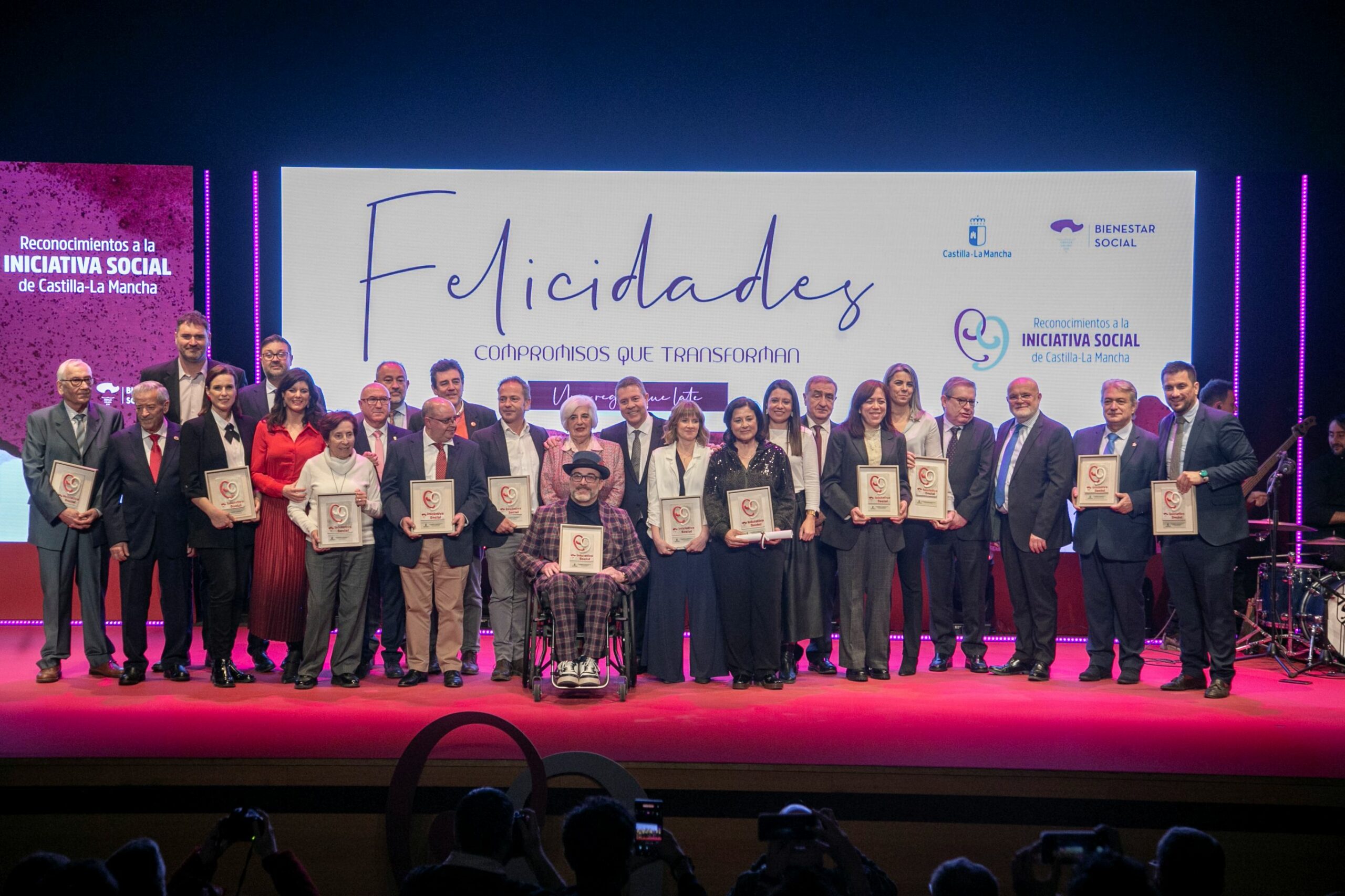 El Gobierno de Castilla-La Mancha ha celebrado esta tarde la gala de entrega de los Reconocimientos a la Iniciativa Social correspondiente al año 2024, que, en esta edición, la novena y con el lema de ‘Compromisos que transforman’, ha distinguido a 17 iniciativas, proyectos y trayectorias ejemplares en ámbitos como la acción social, la cooperación internacional, el voluntariado o la discapacidad.