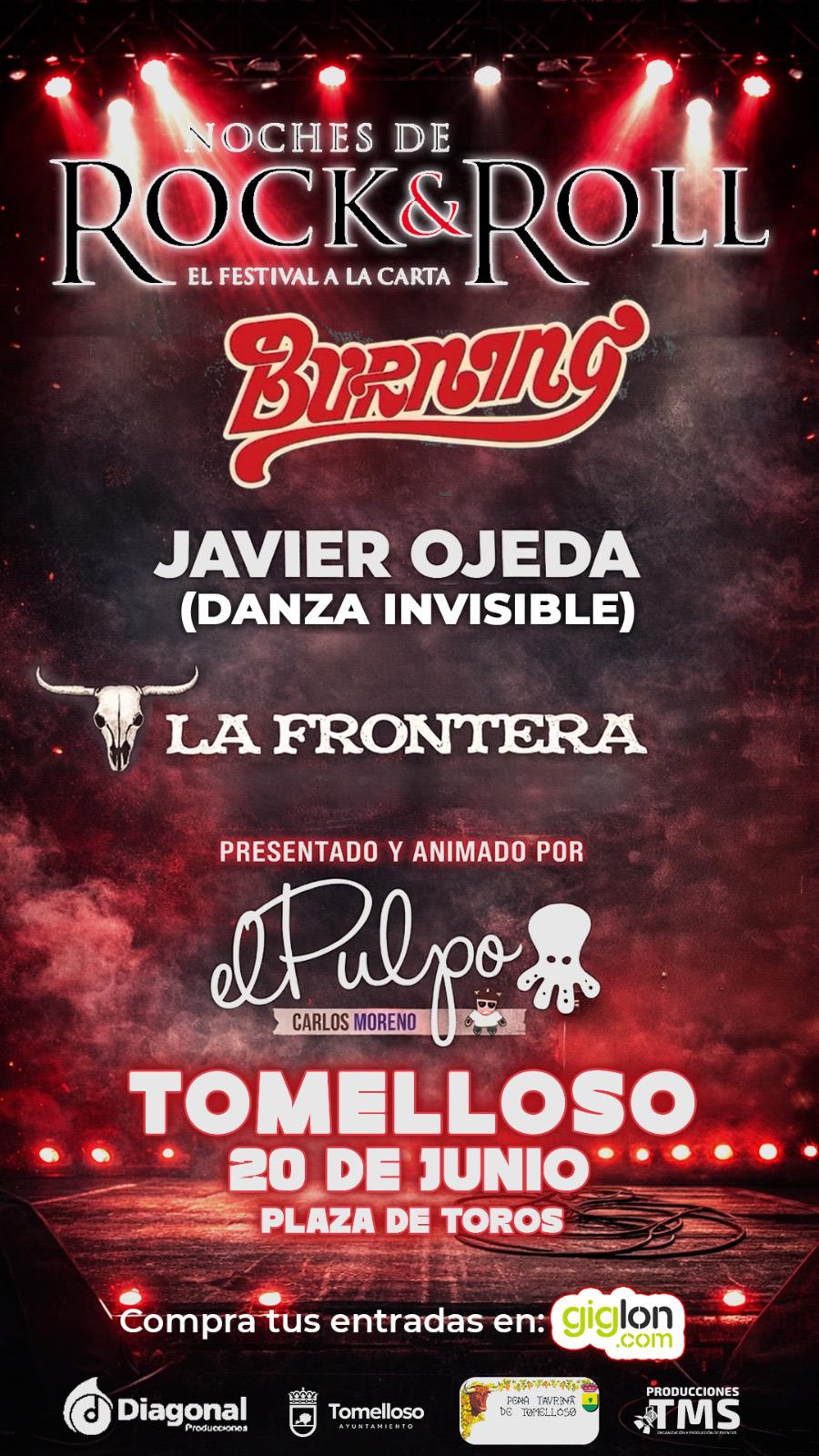 El cartel está encabezado por Burning, banda histórica del rock nacional y referente indiscutible del género; Javier Ojeda (Danza Invisible), una de las voces más icónicas del pop-rock español y La Frontera, grupo clave en la historia del rock en España. La velada será presentada y animada por Carlos Moreno “El Pulpo”, reconocido comunicador y showman, que aportará su energía y carisma a una noche que promete ser inolvidable.
