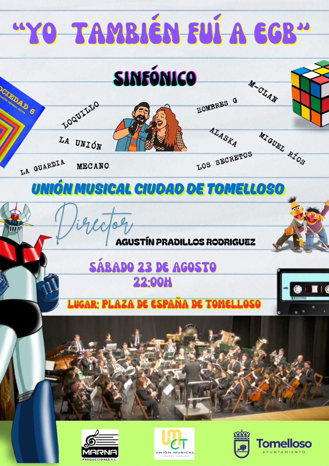 ¡Prepárate para un espectáculo único que te transportará a la época dorada de los 80! El próximo evento “Yo también fui a EGB” será una oportunidad inmejorable para revivir los grandes éxitos de la música española de aquellos años en un concierto de la Unioón Musical Ciudad de Tomelloso, a través de una interpretación especial, con las voces solistas de Ana Simeón y Joan Pastor, se rendirá homenaje a los himnos que marcaron una generación.