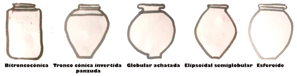 Hemos dibujado el tipo o modelo de tinajas utilizadas con cuatro modelos para las de barro y la típica para la de cemento.