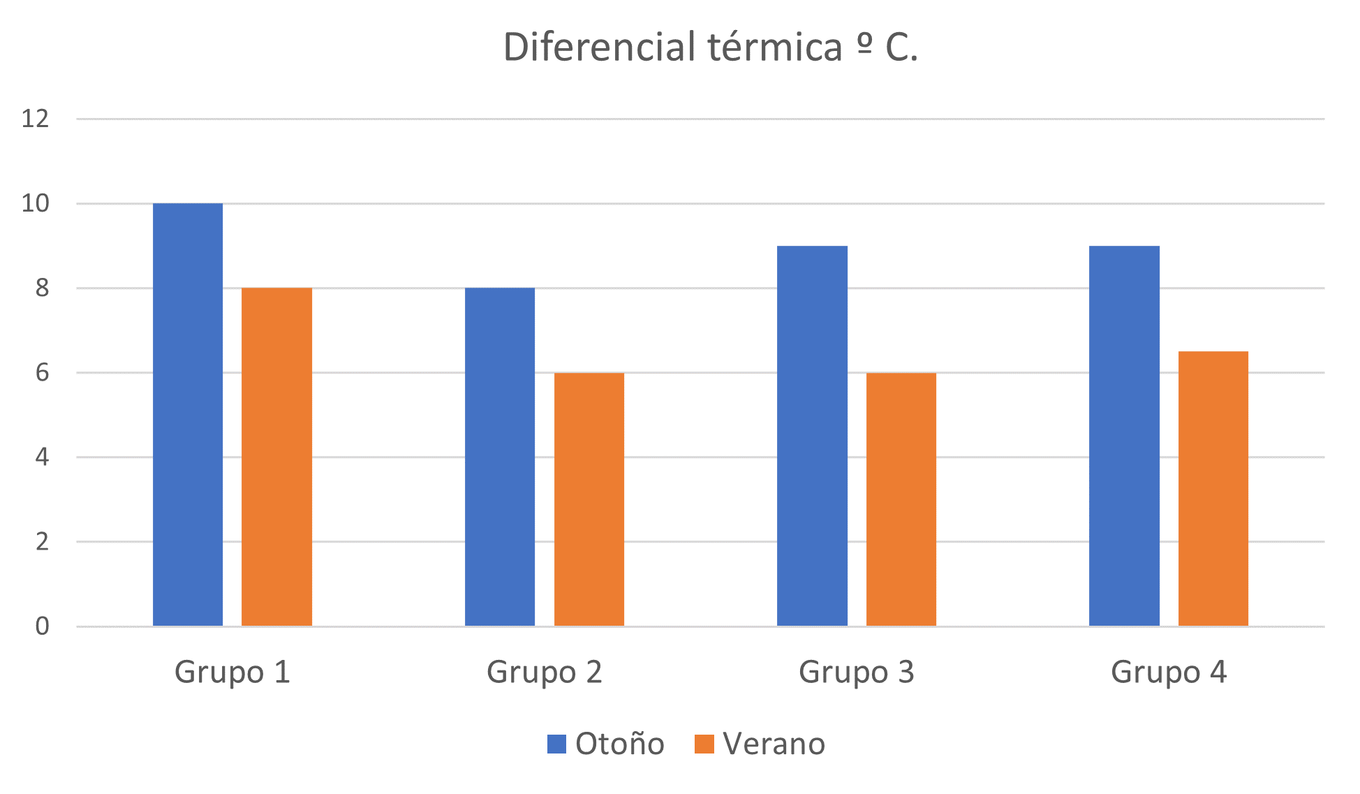 La diferencial térmica determina que la oscilación entre los distintos grupos, aunque diferente, es menos oscilante para cada grupo y que las diferencias entre ellos son muy pequeñas donde las diferenciales térmicas oscilan entre los 8 a 10 grados en otoño y de 6 a 8 grados en verano.