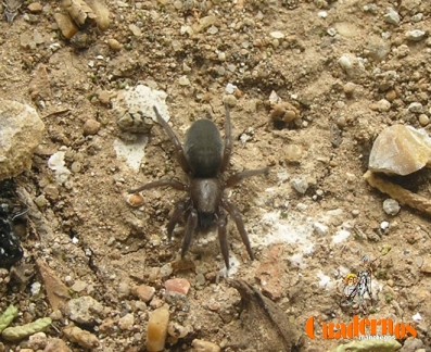 … Amaurobius similis.- Es la llamada como “Araña doméstica común”. Es la más frecuente en las cuevas y especialmente localizada en la parte inferior de las lumbreras, donde captura moscas, mosquitos e insectos de pequeño tamaño. Las telas de araña están confeccionadas con sedas pegajosas.