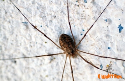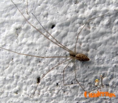 … Phalangium opilio.- Se la conoce con el nombre de “Araña segador”. Tiene unas patas muy alargadas, con el cuerpo poco diferenciado y no construye tela de araña. Suele habitar en lugares exteriores y las encontramos en las zonas más aireadas próximas a las lumbreras.