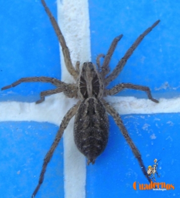… Tegenaria domestica,.- Es la común “Araña doméstica” ya conocida, que tiene un aspecto impresionante, con los machos de palas velludas, globuloso de cuerpo y patas largas. Se mueve con bastante rapidez y cuando se siente amenazada concentra su cuerpo, dando presencia de pasar al ataque. Son totalmente inofensivas y suelen construir sus telas en rincones y cohabitan macho y hembra, hasta que el macho muere, de cuyo cuerpo se alimentan las recién nacidas arañas. También existe una más pequeña: la llamada de “jardín”, un poco más pequeña y de color gris.