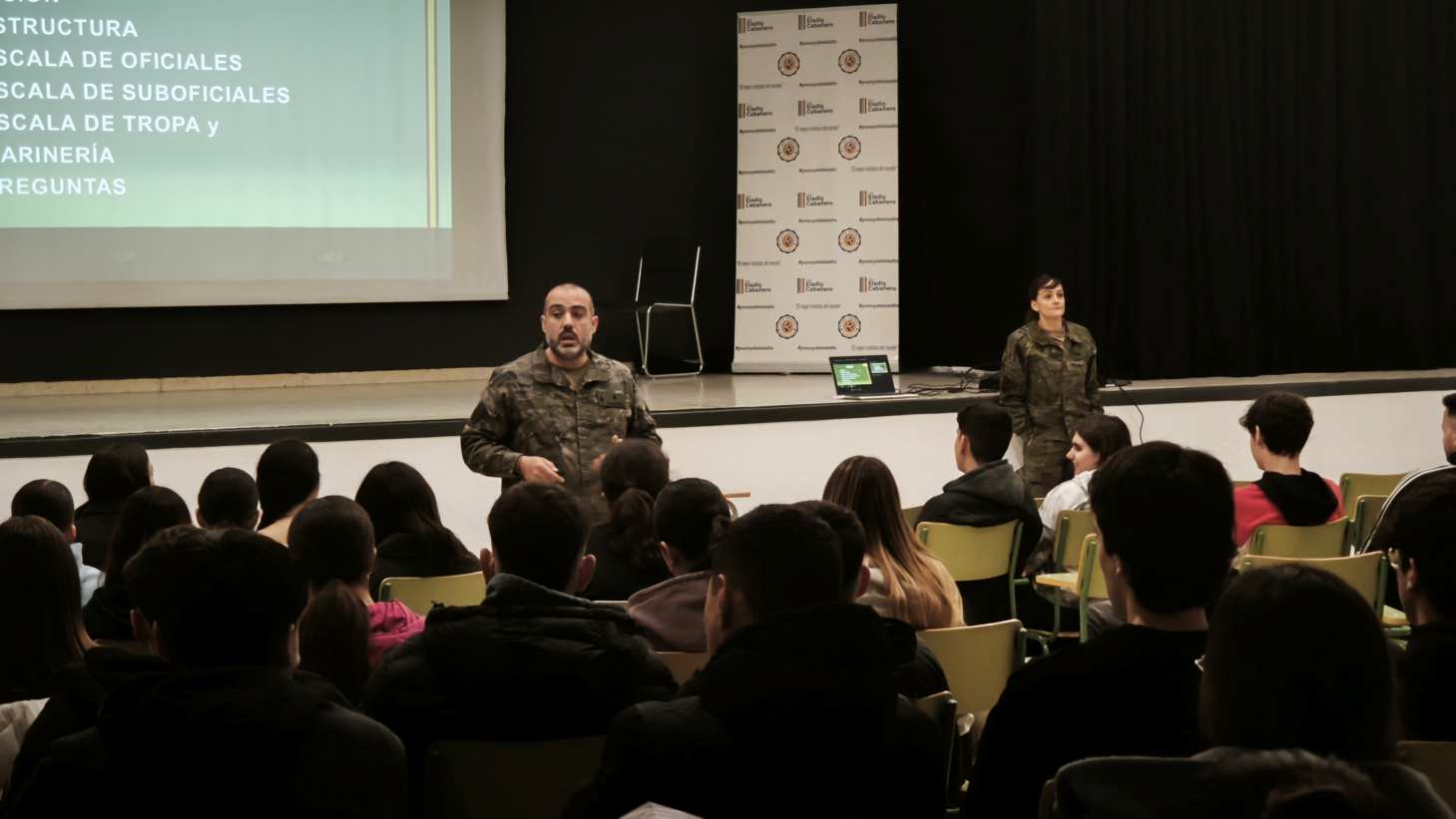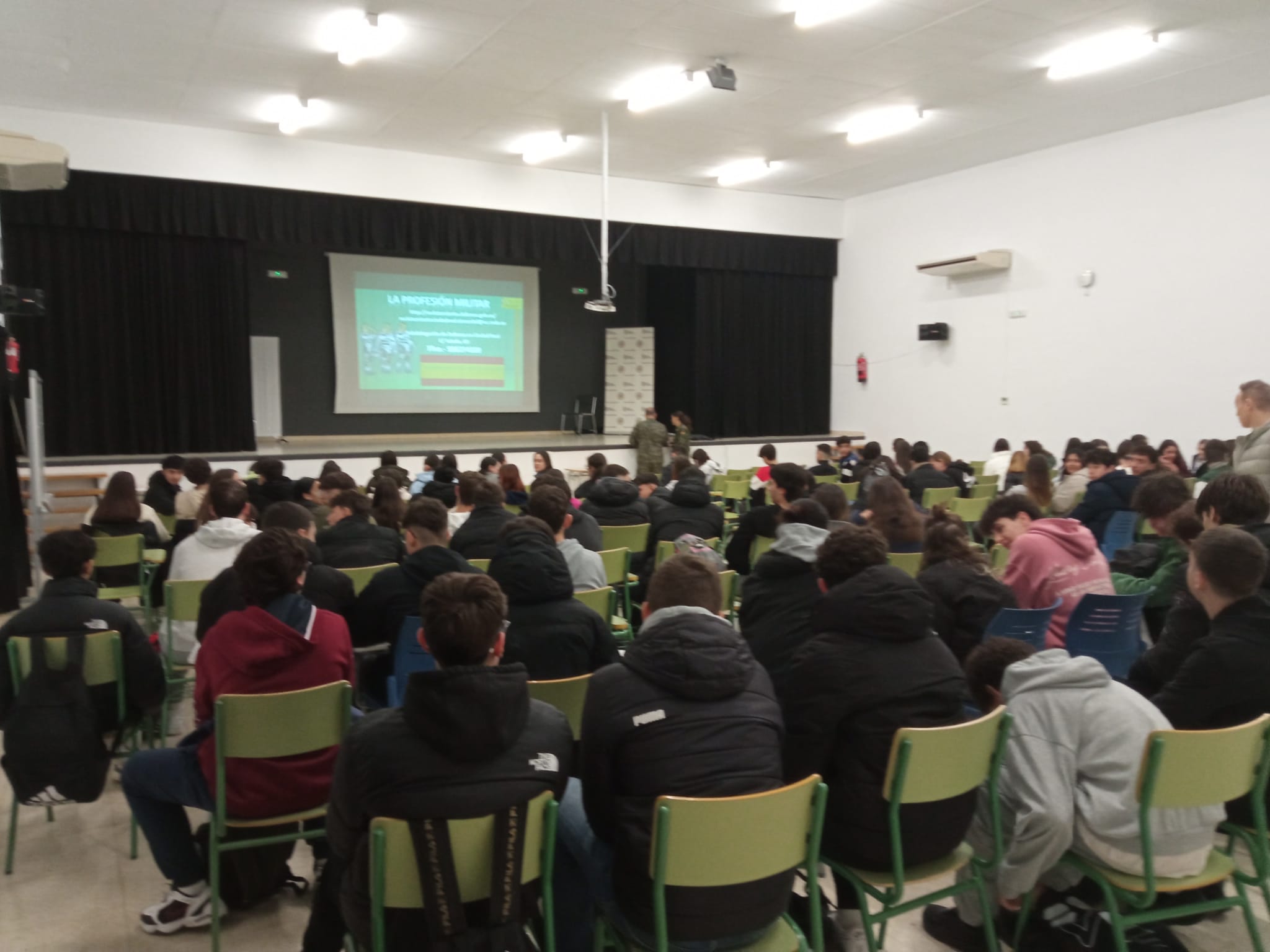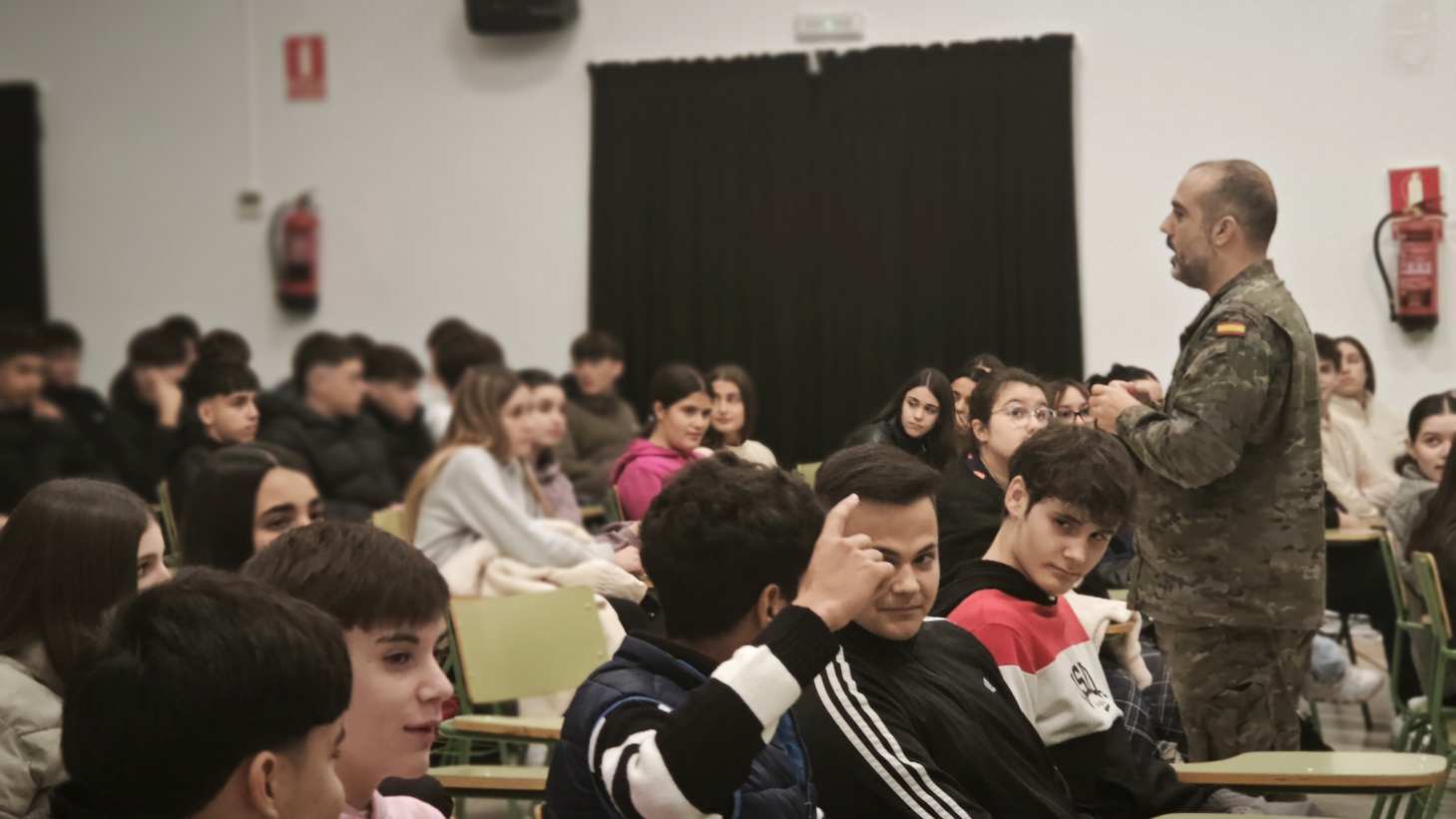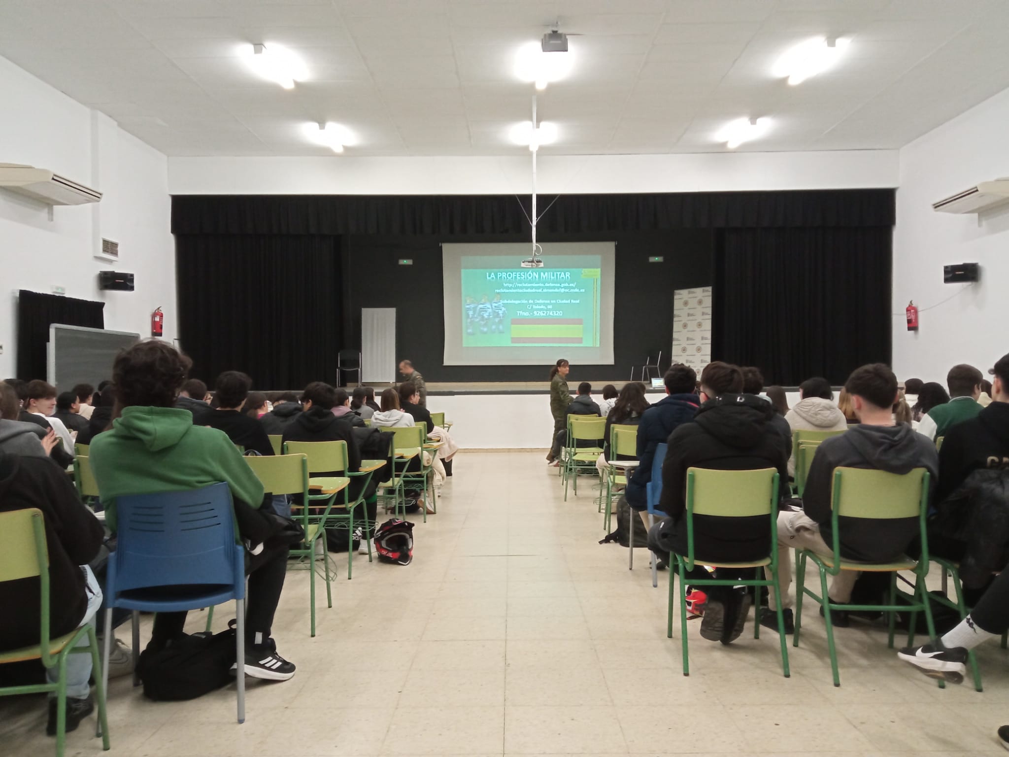 El IES Eladio Cabañero ha recibido esta mañana la visita de representantes de las Fuerzas Armadas, quienes han impartido una charla informativa dirigida al alumnado de 4.º de ESO y Bachillerato con el objetivo de dar a conocer las diferentes posibilidades académicas, formativas y profesionales que ofrece el ejército en sus distintos ámbitos.