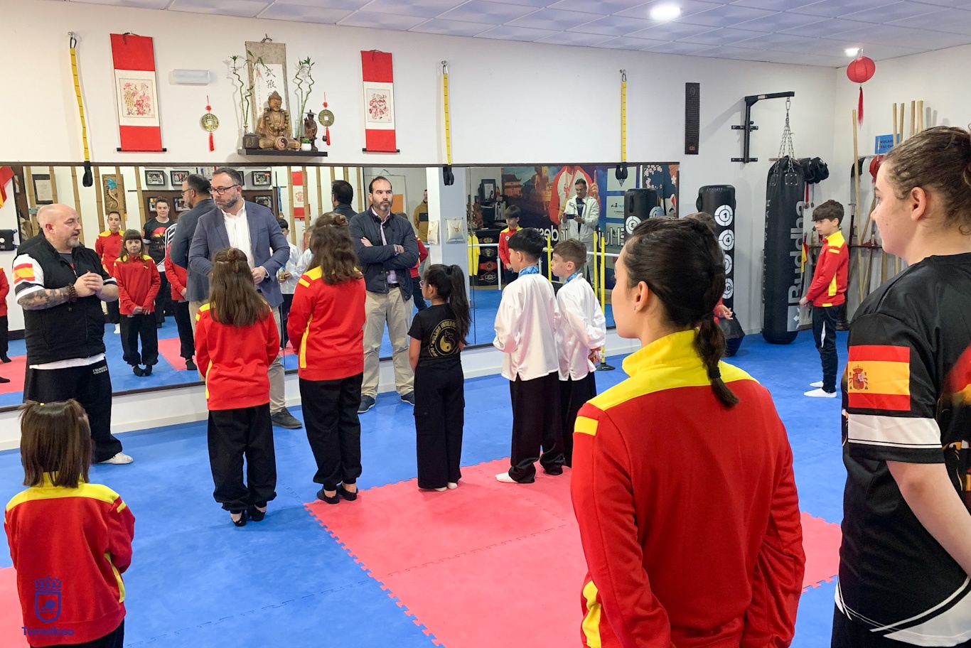 El alcalde, acompañado por el concejal de Deportes, Benjamín de Sebastián, ha transmitido a los alumnos el “orgullo” que “sentimos los tomelloseros cada vez que ganáis una medalla, pero también cuando no ganáis y seguís intentándolo”. El logro más reciente han sido seis oros en el International Wushu Open Tournament Acropolis Atenas 2026