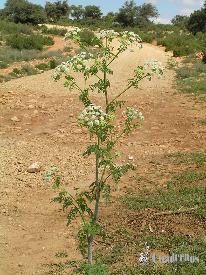 Esta planta de la familia de las umbelíferas es la tan conocida y famosa como Cicuta, de la que todos tenemos referencia por ser la que produjo la muerte por envenenamiento al gran filósofo Sócrates, en el año 399 a. C.