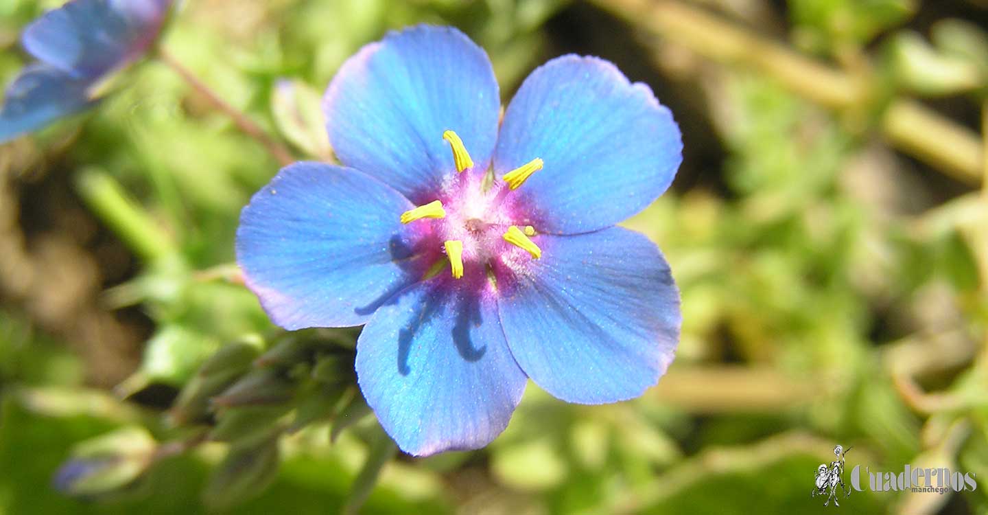 Es una planta cosmopolita, pequeña, anual, de flores con cinco pétalos rojas, aunque también las hay de flores azules.